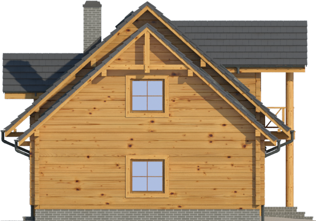 Wysokość ścianki kolankowej: 0.86 m. Strop: drewniany. Pokrycie dachu: dachówka ceramiczna. Ściany zewnętrzne: płazy drewniane. Ściany wewnętrzne: szkieletowe drewniane. Typ ogrzewania: kocioł gazowy. Inne: okna połaciowe Fakro.