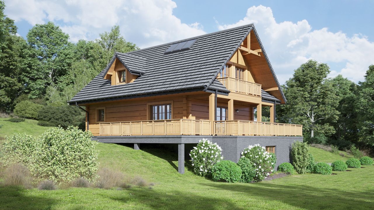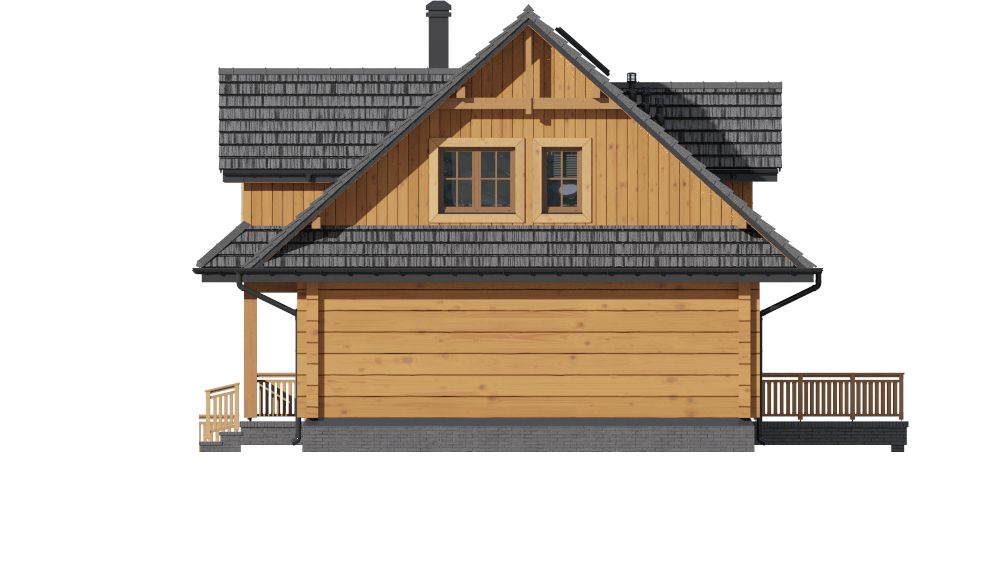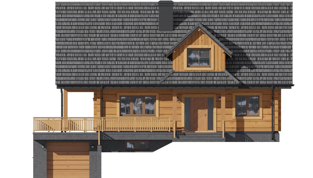 Graficzne opracowanie rzutów poglądowych widocznych na karcie projektu zostało wykonane przez Extradom.pl. Prezentowane przez Extradom.pl wizualizacje wykonane zostały przez autora projektu i należy poczytywać je jedynie za przykład i propozycję wykończenia, wizję architektoniczną autora projektu. Ostateczne wykończenie budynku może nastąpić na wiele sposobów. Szczegółowe rozwiązania zastosowane w oferowanej dokumentacji - w tym również ilość, lokalizacje i wygląd okien, drzwi, kominów - mogą w niewielkim stopniu różnić się od prezentowanej wizualizacji budynku.