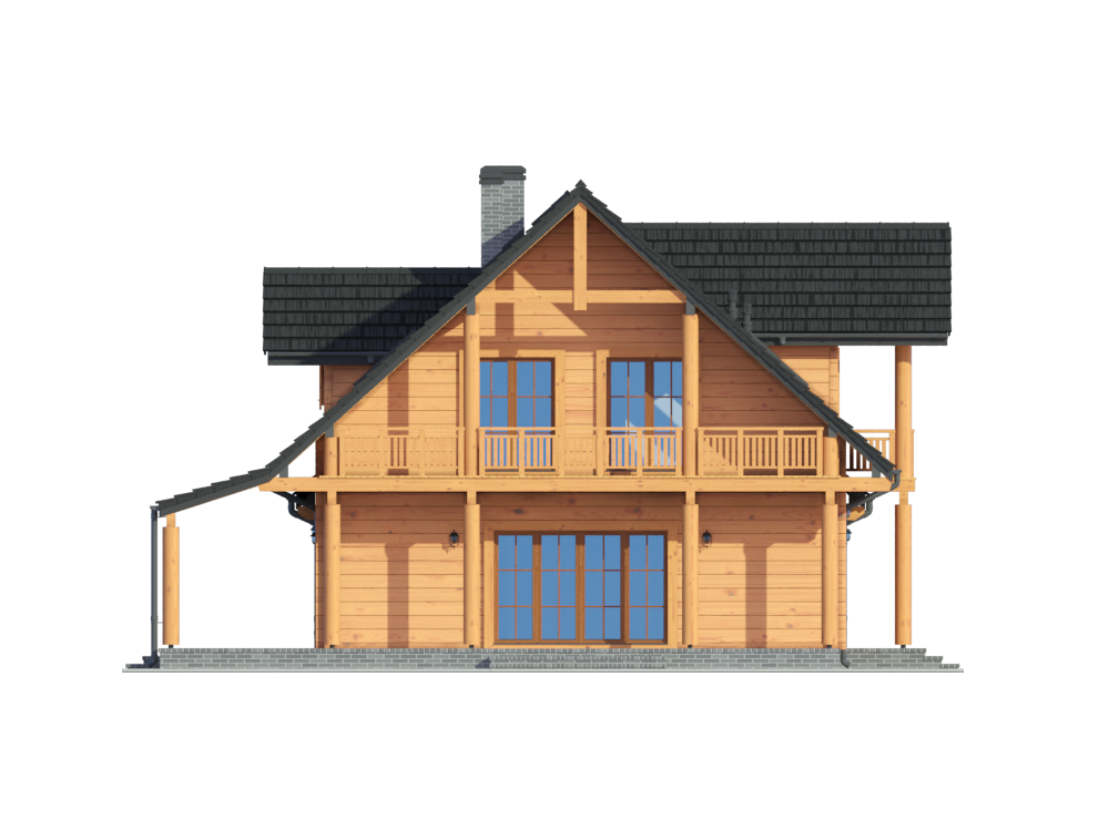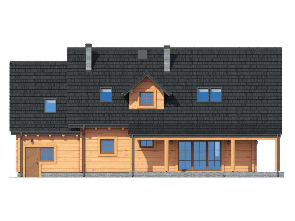 Graficzne opracowanie rzutów poglądowych widocznych na karcie projektu zostało wykonane przez Extradom.pl. Prezentowane przez Extradom.pl wizualizacje wykonane zostały przez autora projektu i należy poczytywać je jedynie za przykład i propozycję wykończenia, wizję architektoniczną autora projektu. Ostateczne wykończenie budynku może nastąpić na wiele sposobów. Szczegółowe rozwiązania zastosowane w oferowanej dokumentacji - w tym również ilość, lokalizacje i wygląd okien, drzwi, kominów - mogą w niewielkim stopniu różnić się od prezentowanej wizualizacji budynku.