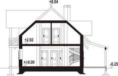 Graficzne opracowanie rzutów poglądowych widocznych na karcie projektu zostało wykonane przez Extradom.pl. Prezentowane przez Extradom.pl wizualizacje wykonane zostały przez autora projektu i należy poczytywać je jedynie za przykład i propozycję wykończenia, wizję architektoniczną autora projektu. Ostateczne wykończenie budynku może nastąpić na wiele sposobów. Szczegółowe rozwiązania zastosowane w oferowanej dokumentacji - w tym również ilość, lokalizacje i wygląd okien, drzwi, kominów - mogą w niewielkim stopniu różnić się od prezentowanej wizualizacji budynku.
