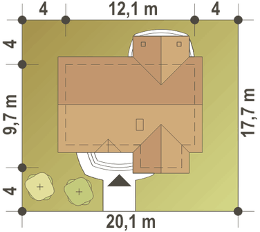 Graficzne opracowanie rzutów poglądowych widocznych na karcie projektu zostało wykonane przez Extradom.pl. Prezentowane przez Extradom.pl wizualizacje wykonane zostały przez autora projektu i należy poczytywać je jedynie za przykład i propozycję wykończenia, wizję architektoniczną autora projektu. Ostateczne wykończenie budynku może nastąpić na wiele sposobów. Szczegółowe rozwiązania zastosowane w oferowanej dokumentacji - w tym również ilość, lokalizacje i wygląd okien, drzwi, kominów - mogą w niewielkim stopniu różnić się od prezentowanej wizualizacji budynku.