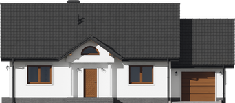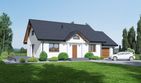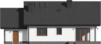 Graficzne opracowanie rzutów poglądowych widocznych na karcie projektu zostało wykonane przez Extradom.pl. Prezentowane przez Extradom.pl wizualizacje wykonane zostały przez autora projektu i należy poczytywać je jedynie za przykład i propozycję wykończenia, wizję architektoniczną autora projektu. Ostateczne wykończenie budynku może nastąpić na wiele sposobów. Szczegółowe rozwiązania zastosowane w oferowanej dokumentacji - w tym również ilość, lokalizacje i wygląd okien, drzwi, kominów - mogą w niewielkim stopniu różnić się od prezentowanej wizualizacji budynku.