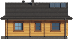 Wysokość ścianki kolankowej: 0.11 m. Strop: drewniany. Pokrycie dachu: dachówka gontopodobna Gerard Corona. Ściany zewnętrzne: płazy drewniane + wełna mineralna + deska. Ściany wewnętrzne: płazy drewniane. Typ ogrzewania: kocioł gazowy lub kocioł na paliwo stałe. Instalacje dodatkowe: instalacja solarna.