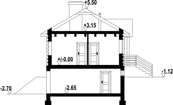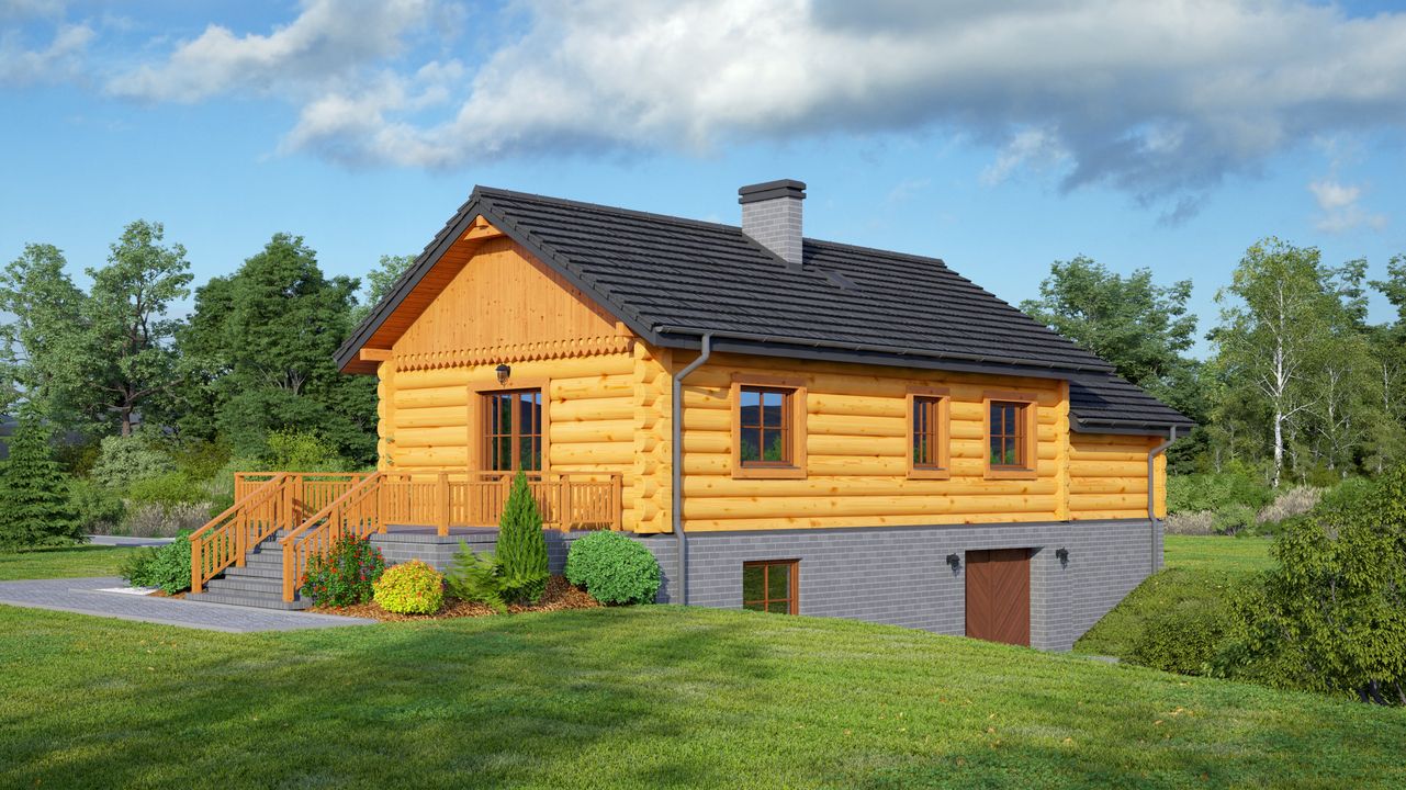 Wysokość ścianki kolankowej: 0.09 m. Strop: żelbet + drewniany. Pokrycie dachu: dachówka gontopodobna Gerard Corona. Ściany zewnętrzne: płazy drewniane + wełna mineralna + deska. Ściany wewnętrzne: płazy drewniane. Typ ogrzewania: kocioł gazowy lub na olej opałowy.