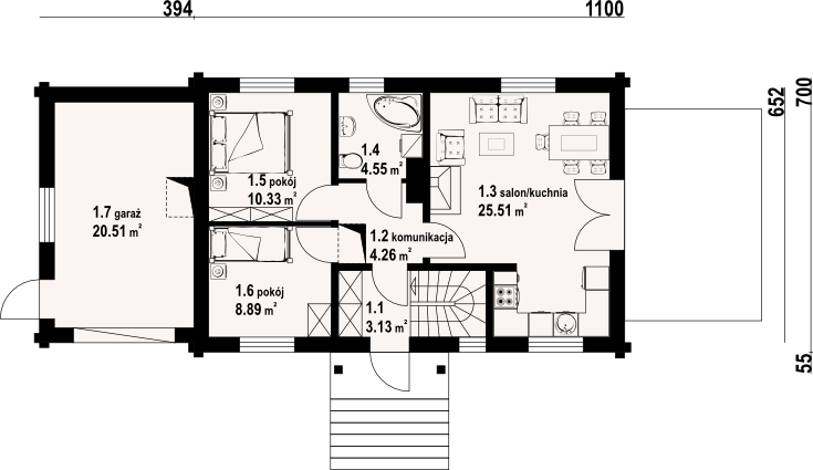 PROJEKT Z BUDOWĄ Istnieje możliwość zaadaptowania tego projektu do technologii prefabrykowanej/modułowej i budowy nawet w 6 miesięcy ze stałym kosztem budowy