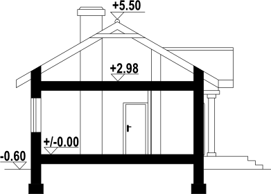 Wysokość ścianki kolankowej: 0.3 m. Strop: płyta żelbetowa. Pokrycie dachu: dachówka ceramiczna. Ściany zewnętrzne: pustaki ceramiczne + styropian. Ściany wewnętrzne: pustaki ceramiczne. Typ ogrzewania: kocioł gazowy.