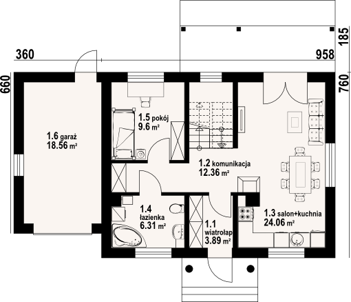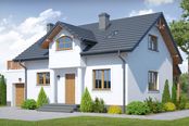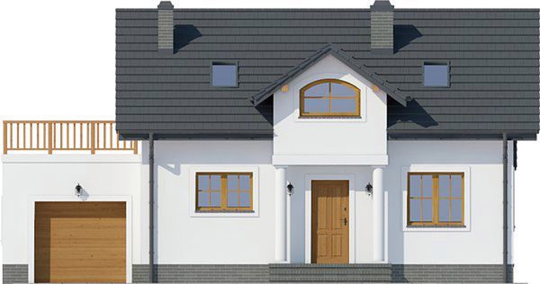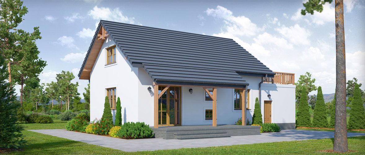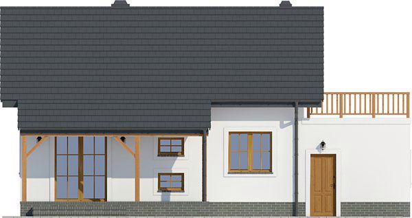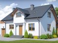 Graficzne opracowanie rzutów poglądowych widocznych na karcie projektu zostało wykonane przez Extradom.pl. Prezentowane przez Extradom.pl wizualizacje wykonane zostały przez autora projektu i należy poczytywać je jedynie za przykład i propozycję wykończenia, wizję architektoniczną autora projektu. Ostateczne wykończenie budynku może nastąpić na wiele sposobów. Szczegółowe rozwiązania zastosowane w oferowanej dokumentacji - w tym również ilość, lokalizacje i wygląd okien, drzwi, kominów - mogą w niewielkim stopniu różnić się od prezentowanej wizualizacji budynku.