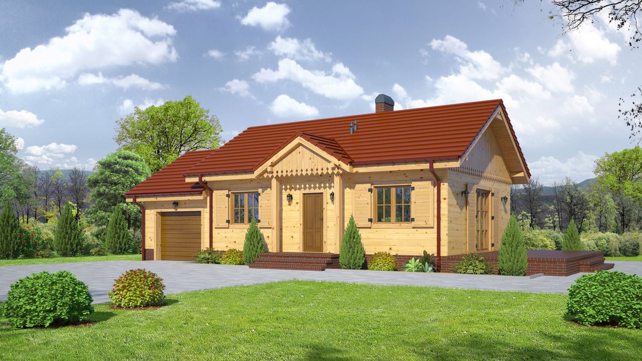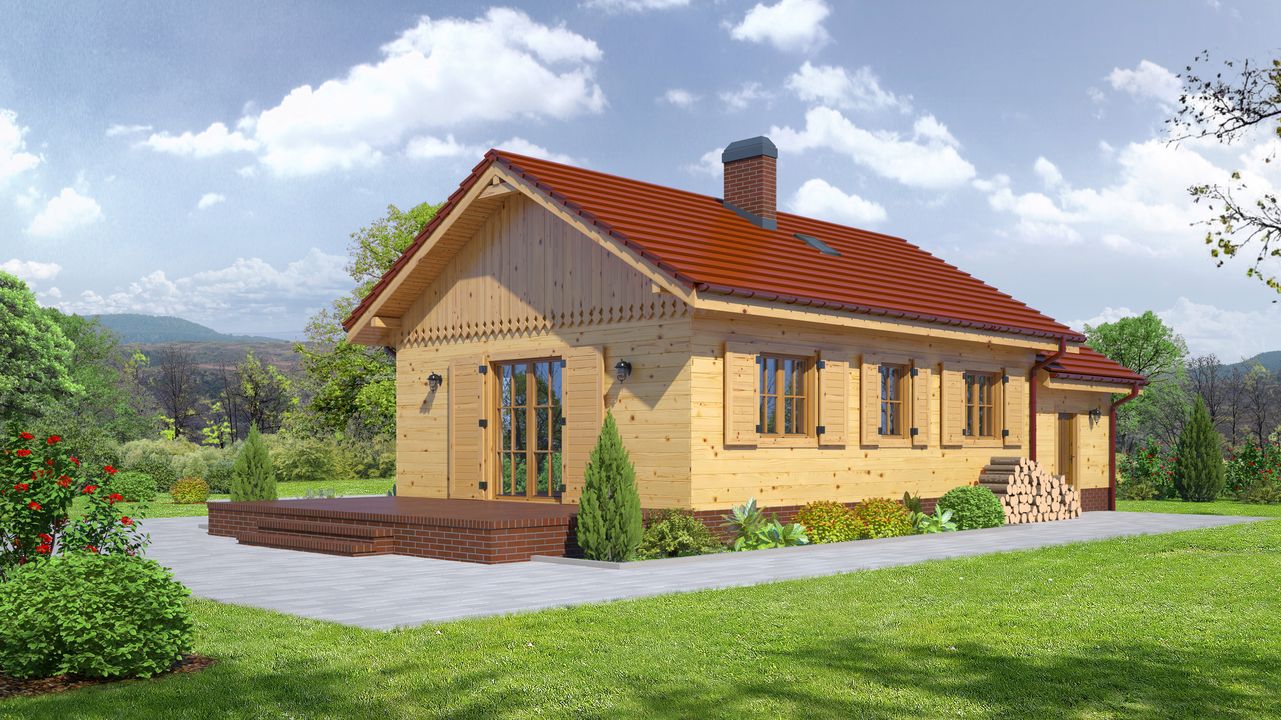 Graficzne opracowanie rzutów poglądowych widocznych na karcie projektu zostało wykonane przez Extradom.pl. Prezentowane przez Extradom.pl wizualizacje wykonane zostały przez autora projektu i należy poczytywać je jedynie za przykład i propozycję wykończenia, wizję architektoniczną autora projektu. Ostateczne wykończenie budynku może nastąpić na wiele sposobów. Szczegółowe rozwiązania zastosowane w oferowanej dokumentacji - w tym również ilość, lokalizacje i wygląd okien, drzwi, kominów - mogą w niewielkim stopniu różnić się od prezentowanej wizualizacji budynku.