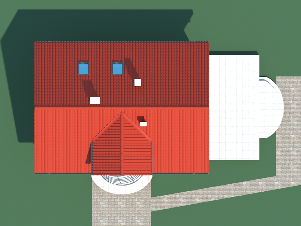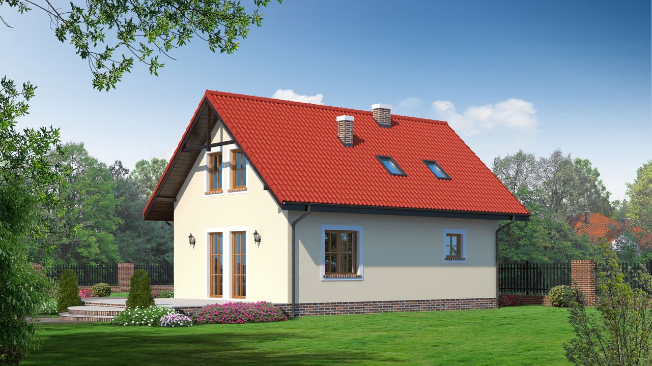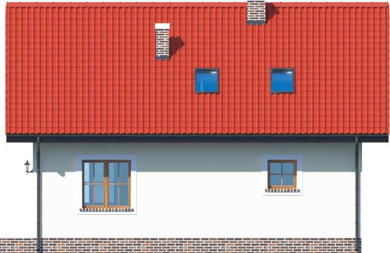 Graficzne opracowanie rzutów poglądowych widocznych na karcie projektu zostało wykonane przez Extradom.pl. Prezentowane przez Extradom.pl wizualizacje wykonane zostały przez autora projektu i należy poczytywać je jedynie za przykład i propozycję wykończenia, wizję architektoniczną autora projektu. Ostateczne wykończenie budynku może nastąpić na wiele sposobów. Szczegółowe rozwiązania zastosowane w oferowanej dokumentacji - w tym również ilość, lokalizacje i wygląd okien, drzwi, kominów - mogą w niewielkim stopniu różnić się od prezentowanej wizualizacji budynku.