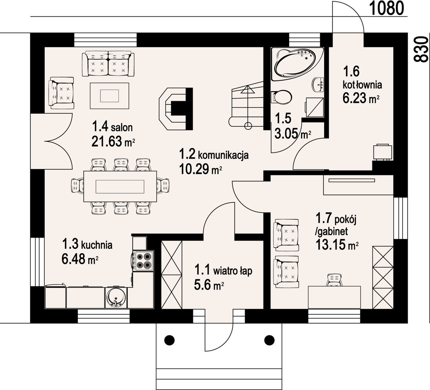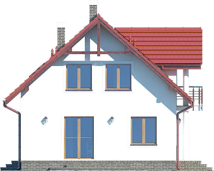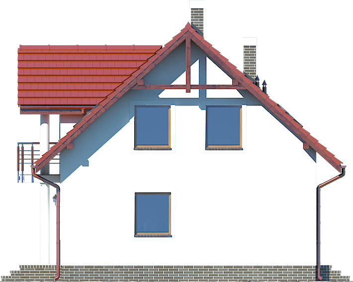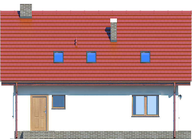 Graficzne opracowanie rzutów poglądowych widocznych na karcie projektu zostało wykonane przez Extradom.pl. Prezentowane przez Extradom.pl wizualizacje wykonane zostały przez autora projektu i należy poczytywać je jedynie za przykład i propozycję wykończenia, wizję architektoniczną autora projektu. Ostateczne wykończenie budynku może nastąpić na wiele sposobów. Szczegółowe rozwiązania zastosowane w oferowanej dokumentacji - w tym również ilość, lokalizacje i wygląd okien, drzwi, kominów - mogą w niewielkim stopniu różnić się od prezentowanej wizualizacji budynku.