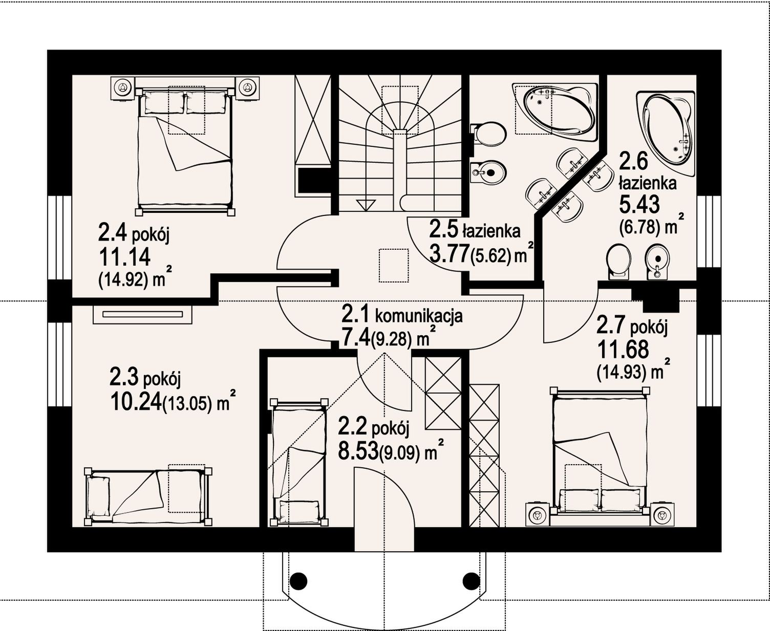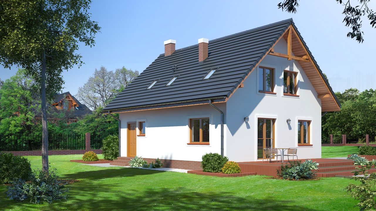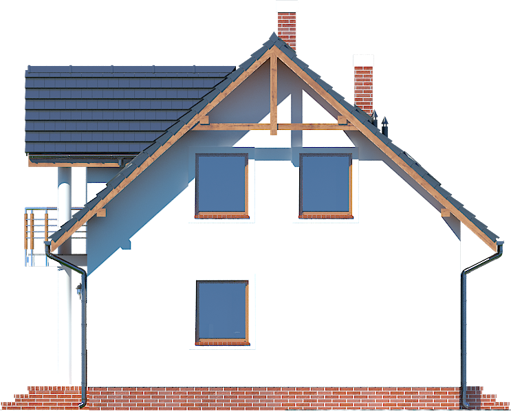 Graficzne opracowanie rzutów poglądowych widocznych na karcie projektu zostało wykonane przez Extradom.pl. Prezentowane przez Extradom.pl wizualizacje wykonane zostały przez autora projektu i należy poczytywać je jedynie za przykład i propozycję wykończenia, wizję architektoniczną autora projektu. Ostateczne wykończenie budynku może nastąpić na wiele sposobów. Szczegółowe rozwiązania zastosowane w oferowanej dokumentacji - w tym również ilość, lokalizacje i wygląd okien, drzwi, kominów - mogą w niewielkim stopniu różnić się od prezentowanej wizualizacji budynku.