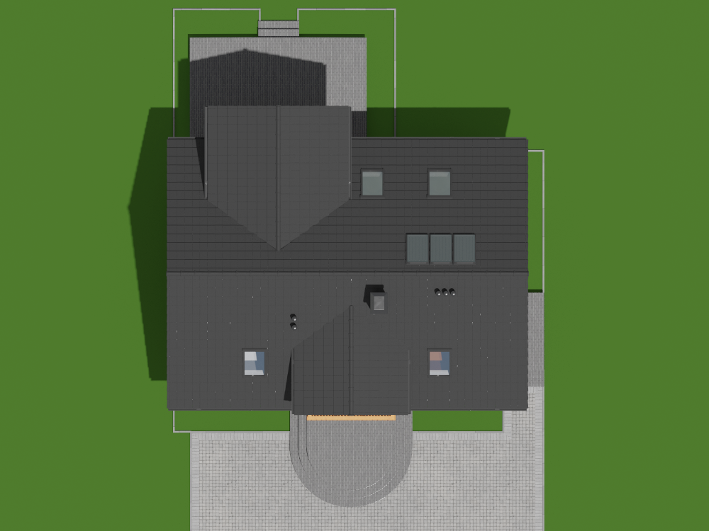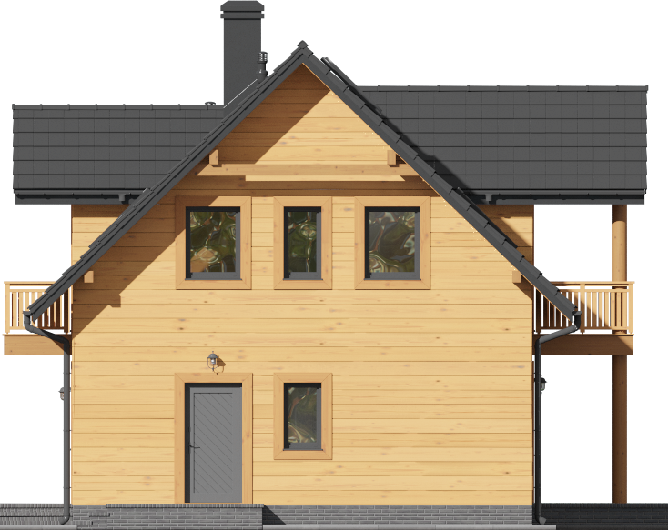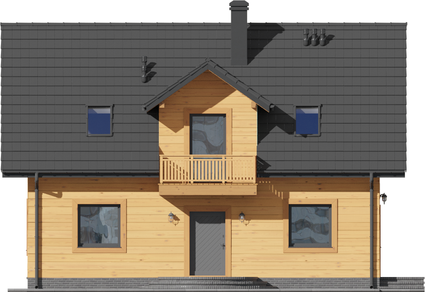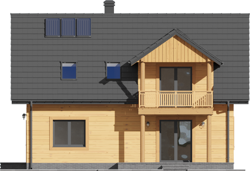 Graficzne opracowanie rzutów poglądowych widocznych na karcie projektu zostało wykonane przez Extradom.pl. Prezentowane przez Extradom.pl wizualizacje wykonane zostały przez autora projektu i należy poczytywać je jedynie za przykład i propozycję wykończenia, wizję architektoniczną autora projektu. Ostateczne wykończenie budynku może nastąpić na wiele sposobów. Szczegółowe rozwiązania zastosowane w oferowanej dokumentacji - w tym również ilość, lokalizacje i wygląd okien, drzwi, kominów - mogą w niewielkim stopniu różnić się od prezentowanej wizualizacji budynku.