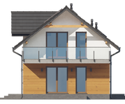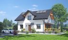 Graficzne opracowanie rzutów poglądowych widocznych na karcie projektu zostało wykonane przez Extradom.pl. Prezentowane przez Extradom.pl wizualizacje wykonane zostały przez autora projektu i należy poczytywać je jedynie za przykład i propozycję wykończenia, wizję architektoniczną autora projektu. Ostateczne wykończenie budynku może nastąpić na wiele sposobów. Szczegółowe rozwiązania zastosowane w oferowanej dokumentacji - w tym również ilość, lokalizacje i wygląd okien, drzwi, kominów - mogą w niewielkim stopniu różnić się od prezentowanej wizualizacji budynku.