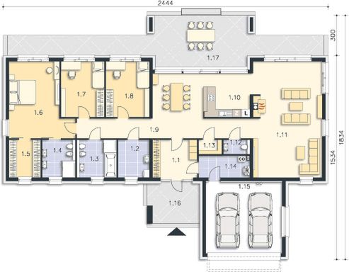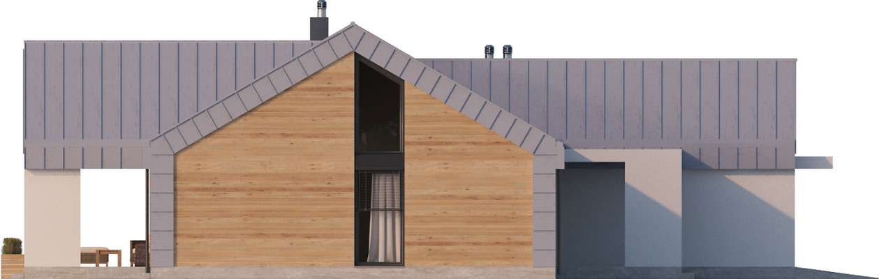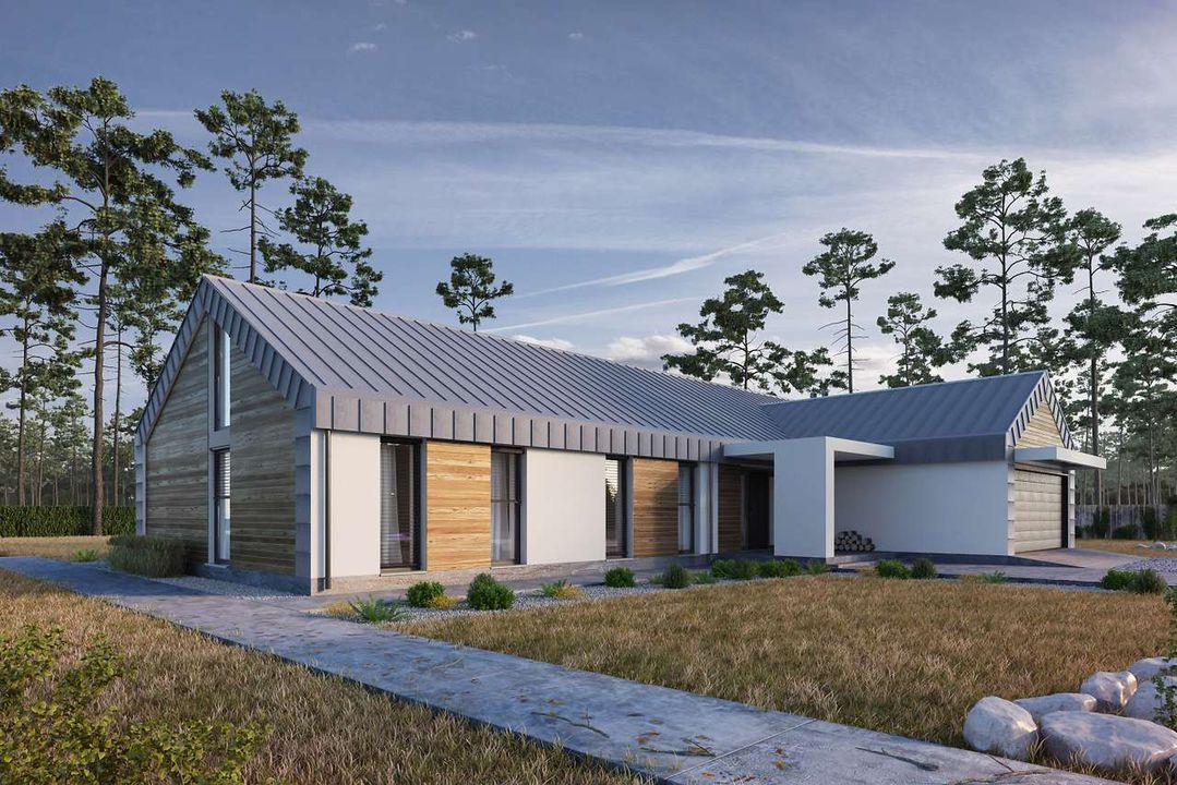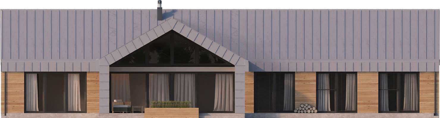 Graficzne opracowanie rzutów poglądowych widocznych na karcie projektu zostało wykonane przez Extradom.pl. Prezentowane przez Extradom.pl wizualizacje wykonane zostały przez autora projektu i należy poczytywać je jedynie za przykład i propozycję wykończenia, wizję architektoniczną autora projektu. Ostateczne wykończenie budynku może nastąpić na wiele sposobów. Szczegółowe rozwiązania zastosowane w oferowanej dokumentacji - w tym również ilość, lokalizacje i wygląd okien, drzwi, kominów - mogą w niewielkim stopniu różnić się od prezentowanej wizualizacji budynku.
