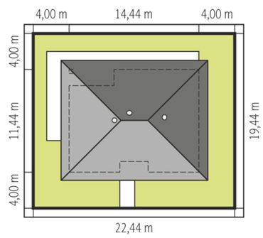 Graficzne opracowanie rzutów poglądowych widocznych na karcie projektu zostało wykonane przez Extradom.pl. Prezentowane przez Extradom.pl wizualizacje wykonane zostały przez autora projektu i należy poczytywać je jedynie za przykład i propozycję wykończenia, wizję architektoniczną autora projektu. Ostateczne wykończenie budynku może nastąpić na wiele sposobów. Szczegółowe rozwiązania zastosowane w oferowanej dokumentacji - w tym również ilość, lokalizacje i wygląd okien, drzwi, kominów - mogą w niewielkim stopniu różnić się od prezentowanej wizualizacji budynku.