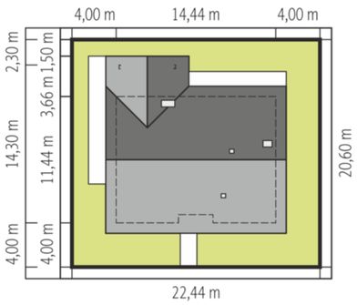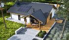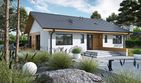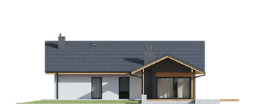 Graficzne opracowanie rzutów poglądowych widocznych na karcie projektu zostało wykonane przez Extradom.pl. Prezentowane przez Extradom.pl wizualizacje wykonane zostały przez autora projektu i należy poczytywać je jedynie za przykład i propozycję wykończenia, wizję architektoniczną autora projektu. Ostateczne wykończenie budynku może nastąpić na wiele sposobów. Szczegółowe rozwiązania zastosowane w oferowanej dokumentacji - w tym również ilość, lokalizacje i wygląd okien, drzwi, kominów - mogą w niewielkim stopniu różnić się od prezentowanej wizualizacji budynku.