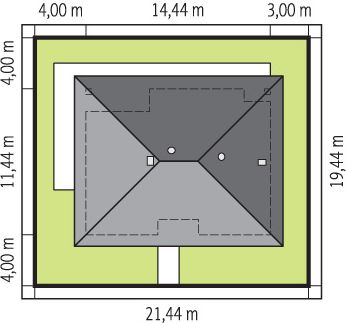 Graficzne opracowanie rzutów poglądowych widocznych na karcie projektu zostało wykonane przez Extradom.pl. Prezentowane przez Extradom.pl wizualizacje wykonane zostały przez autora projektu i należy poczytywać je jedynie za przykład i propozycję wykończenia, wizję architektoniczną autora projektu. Ostateczne wykończenie budynku może nastąpić na wiele sposobów. Szczegółowe rozwiązania zastosowane w oferowanej dokumentacji - w tym również ilość, lokalizacje i wygląd okien, drzwi, kominów - mogą w niewielkim stopniu różnić się od prezentowanej wizualizacji budynku.