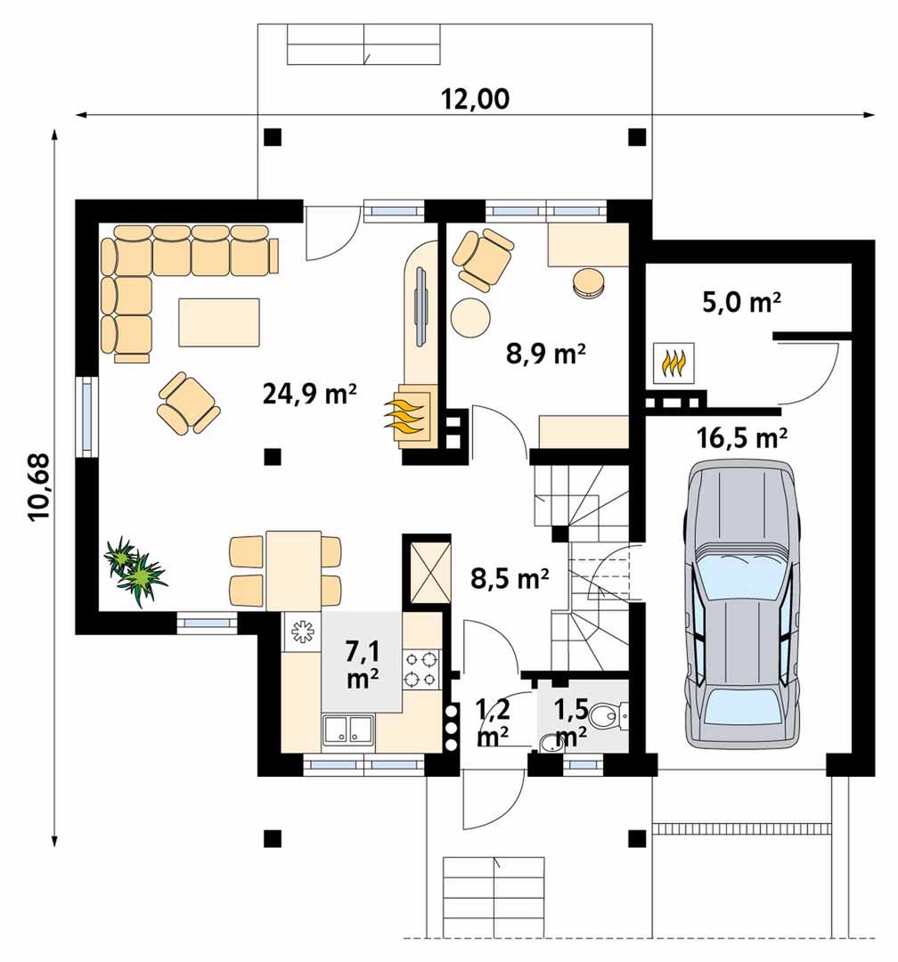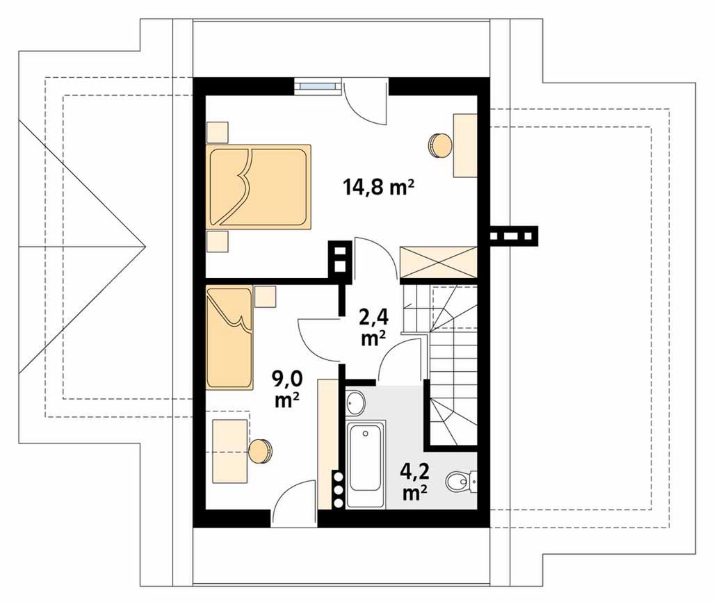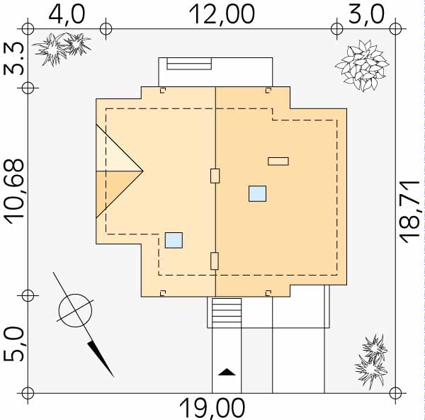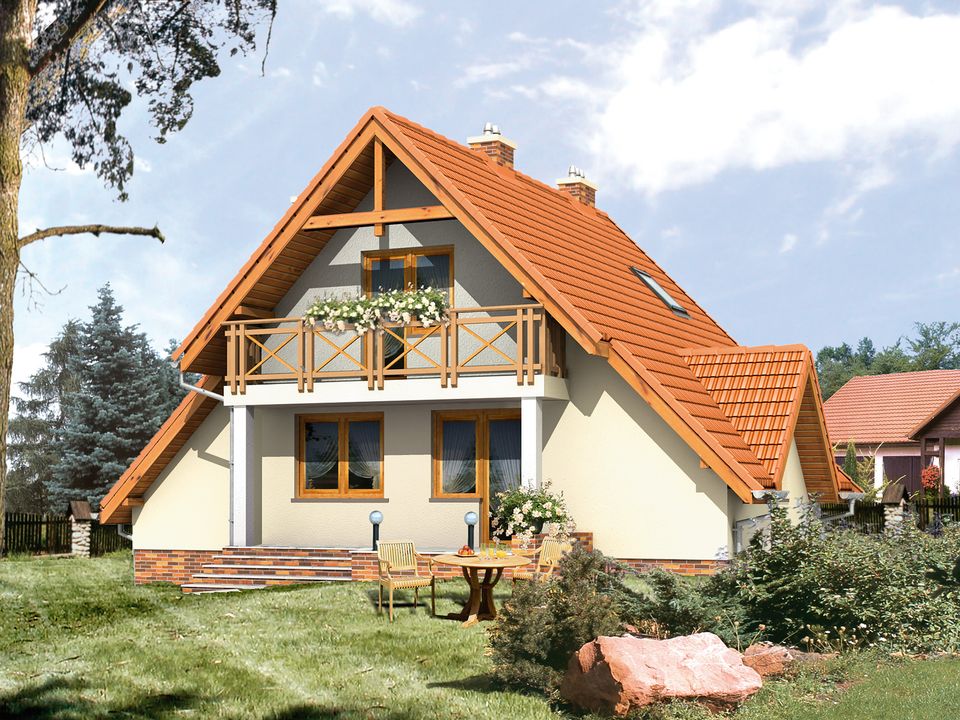 Graficzne opracowanie rzutów poglądowych widocznych na karcie projektu zostało wykonane przez Extradom.pl. Prezentowane przez Extradom.pl wizualizacje wykonane zostały przez autora projektu i należy poczytywać je jedynie za przykład i propozycję wykończenia, wizję architektoniczną autora projektu. Ostateczne wykończenie budynku może nastąpić na wiele sposobów. Szczegółowe rozwiązania zastosowane w oferowanej dokumentacji - w tym również ilość, lokalizacje i wygląd okien, drzwi, kominów - mogą w niewielkim stopniu różnić się od prezentowanej wizualizacji budynku.