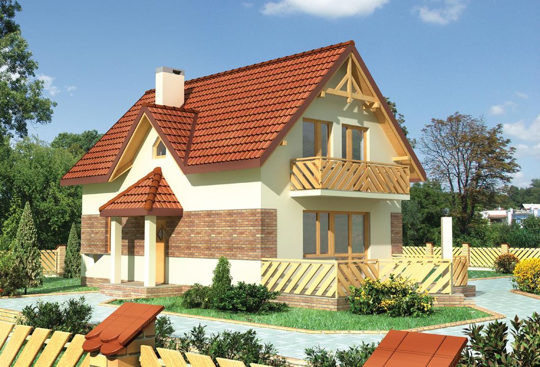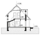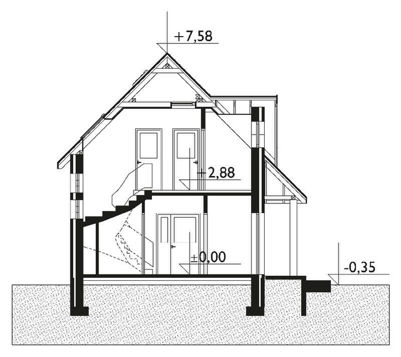 Graficzne opracowanie rzutów poglądowych widocznych na karcie projektu zostało wykonane przez Extradom.pl. Prezentowane przez Extradom.pl wizualizacje wykonane zostały przez autora projektu i należy poczytywać je jedynie za przykład i propozycję wykończenia, wizję architektoniczną autora projektu. Ostateczne wykończenie budynku może nastąpić na wiele sposobów. Szczegółowe rozwiązania zastosowane w oferowanej dokumentacji - w tym również ilość, lokalizacje i wygląd okien, drzwi, kominów - mogą w niewielkim stopniu różnić się od prezentowanej wizualizacji budynku.