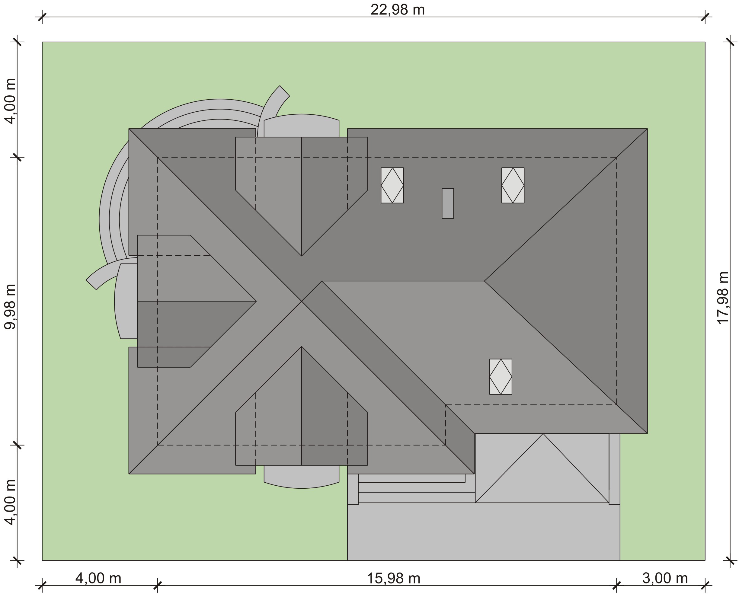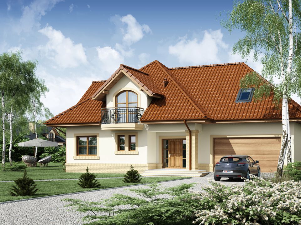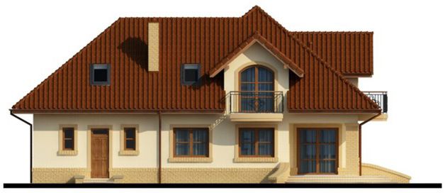 Graficzne opracowanie rzutów poglądowych widocznych na karcie projektu zostało wykonane przez Extradom.pl. Prezentowane przez Extradom.pl wizualizacje wykonane zostały przez autora projektu i należy poczytywać je jedynie za przykład i propozycję wykończenia, wizję architektoniczną autora projektu. Ostateczne wykończenie budynku może nastąpić na wiele sposobów. Szczegółowe rozwiązania zastosowane w oferowanej dokumentacji - w tym również ilość, lokalizacje i wygląd okien, drzwi, kominów - mogą w niewielkim stopniu różnić się od prezentowanej wizualizacji budynku.