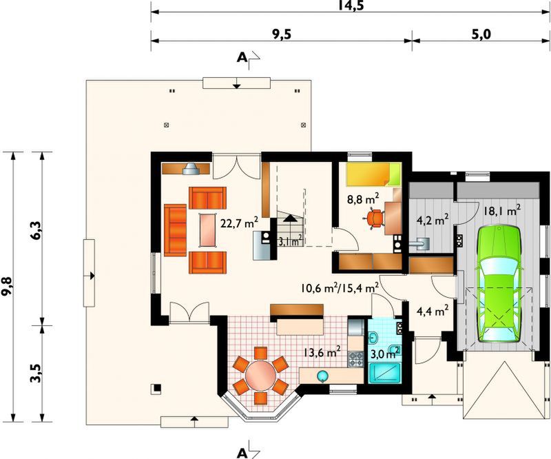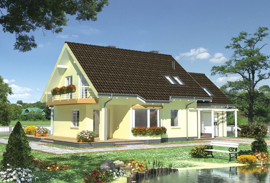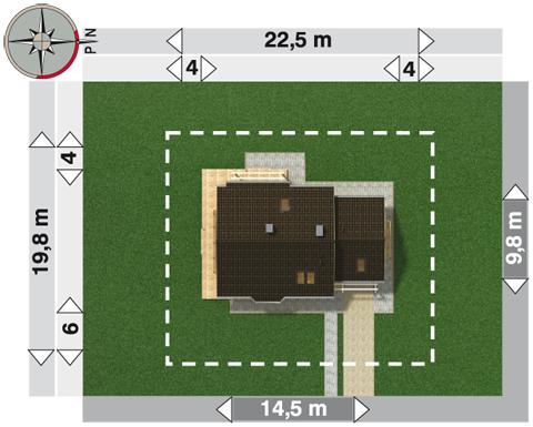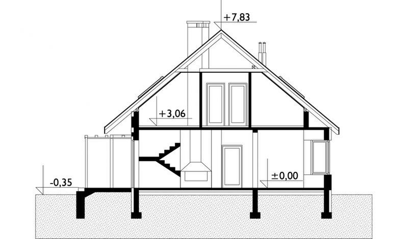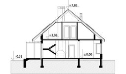 Graficzne opracowanie rzutów poglądowych widocznych na karcie projektu zostało wykonane przez Extradom.pl. Prezentowane przez Extradom.pl wizualizacje wykonane zostały przez autora projektu i należy poczytywać je jedynie za przykład i propozycję wykończenia, wizję architektoniczną autora projektu. Ostateczne wykończenie budynku może nastąpić na wiele sposobów. Szczegółowe rozwiązania zastosowane w oferowanej dokumentacji - w tym również ilość, lokalizacje i wygląd okien, drzwi, kominów - mogą w niewielkim stopniu różnić się od prezentowanej wizualizacji budynku.