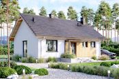 Graficzne opracowanie rzutów poglądowych widocznych na karcie projektu zostało wykonane przez Extradom.pl. Prezentowane przez Extradom.pl wizualizacje wykonane zostały przez autora projektu i należy poczytywać je jedynie za przykład i propozycję wykończenia, wizję architektoniczną autora projektu. Ostateczne wykończenie budynku może nastąpić na wiele sposobów. Szczegółowe rozwiązania zastosowane w oferowanej dokumentacji - w tym również ilość, lokalizacje i wygląd okien, drzwi, kominów - mogą w niewielkim stopniu różnić się od prezentowanej wizualizacji budynku.