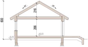 Fundamenty żelbetowe. Ściany nośne i działowe z pustaków ceramicznych. Strop drewniany Konstrukcja dachu drewniana. Pokrycie dachu dachówką betonową lub ceramiczną.