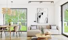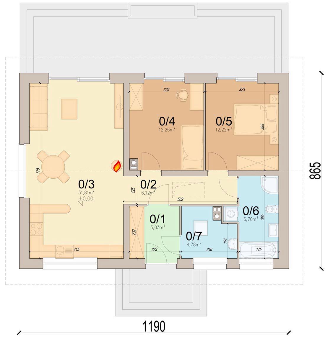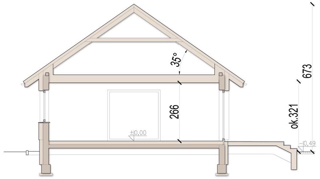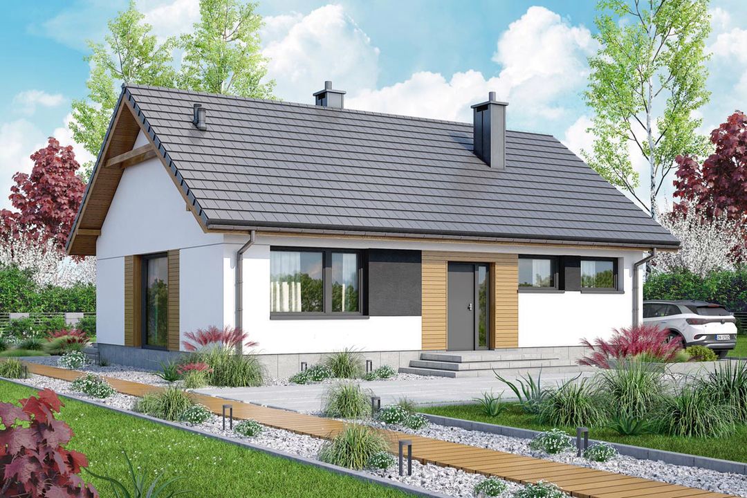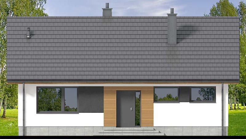 Graficzne opracowanie rzutów poglądowych widocznych na karcie projektu zostało wykonane przez Extradom.pl. Prezentowane przez Extradom.pl wizualizacje wykonane zostały przez autora projektu i należy poczytywać je jedynie za przykład i propozycję wykończenia, wizję architektoniczną autora projektu. Ostateczne wykończenie budynku może nastąpić na wiele sposobów. Szczegółowe rozwiązania zastosowane w oferowanej dokumentacji - w tym również ilość, lokalizacje i wygląd okien, drzwi, kominów - mogą w niewielkim stopniu różnić się od prezentowanej wizualizacji budynku.