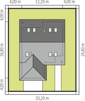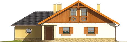 Graficzne opracowanie rzutów poglądowych widocznych na karcie projektu zostało wykonane przez Extradom.pl. Prezentowane przez Extradom.pl wizualizacje wykonane zostały przez autora projektu i należy poczytywać je jedynie za przykład i propozycję wykończenia, wizję architektoniczną autora projektu. Ostateczne wykończenie budynku może nastąpić na wiele sposobów. Szczegółowe rozwiązania zastosowane w oferowanej dokumentacji - w tym również ilość, lokalizacje i wygląd okien, drzwi, kominów - mogą w niewielkim stopniu różnić się od prezentowanej wizualizacji budynku.