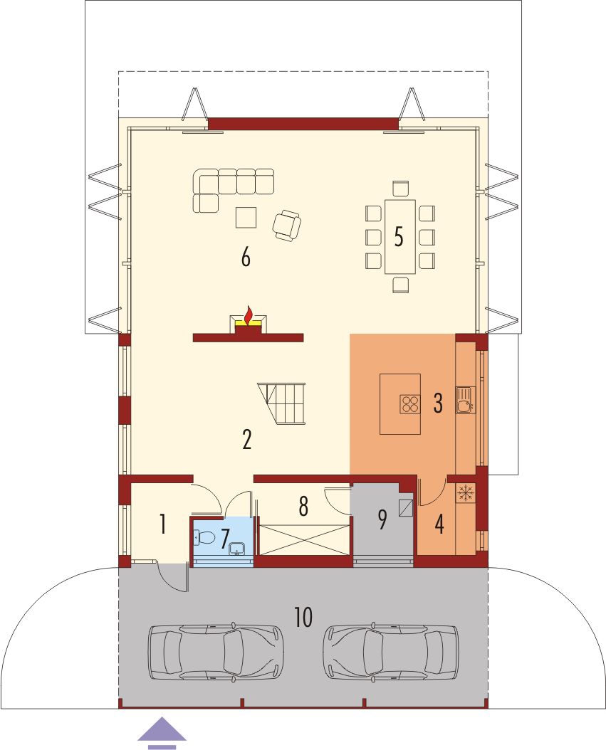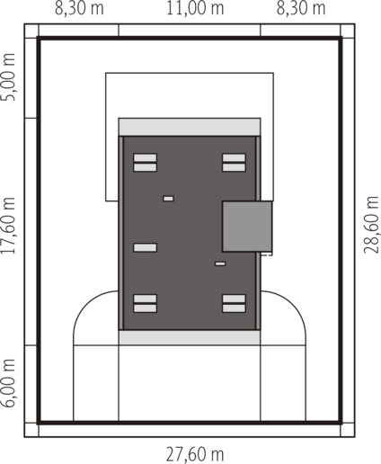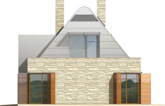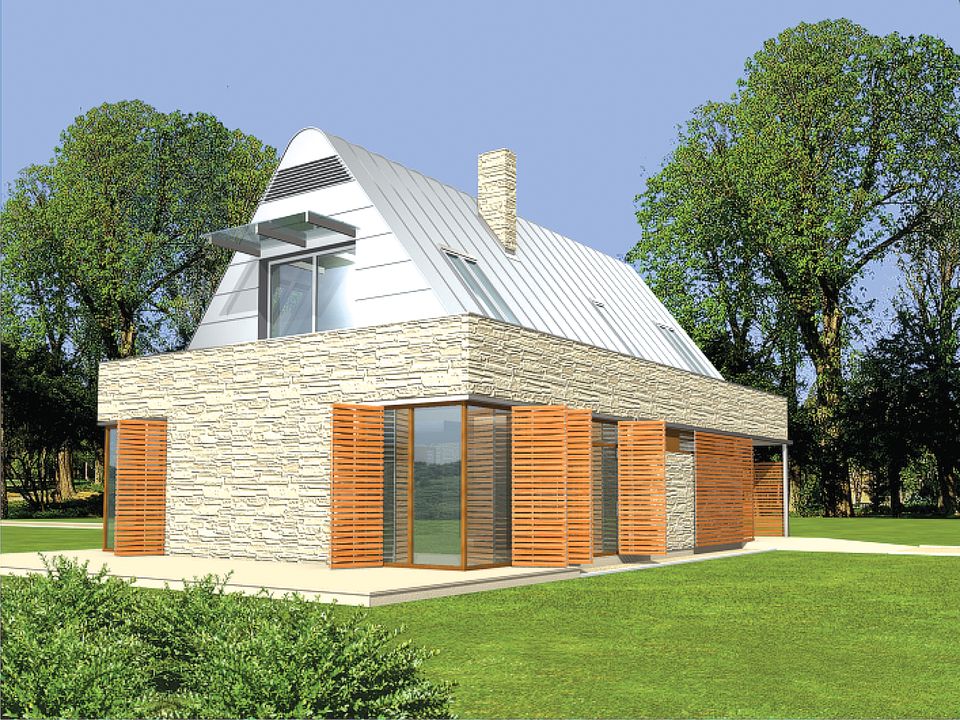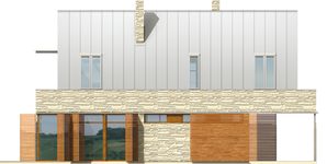 Graficzne opracowanie rzutów poglądowych widocznych na karcie projektu zostało wykonane przez Extradom.pl. Prezentowane przez Extradom.pl wizualizacje wykonane zostały przez autora projektu i należy poczytywać je jedynie za przykład i propozycję wykończenia, wizję architektoniczną autora projektu. Ostateczne wykończenie budynku może nastąpić na wiele sposobów. Szczegółowe rozwiązania zastosowane w oferowanej dokumentacji - w tym również ilość, lokalizacje i wygląd okien, drzwi, kominów - mogą w niewielkim stopniu różnić się od prezentowanej wizualizacji budynku.
