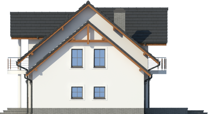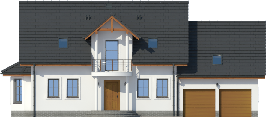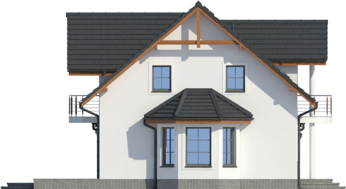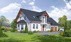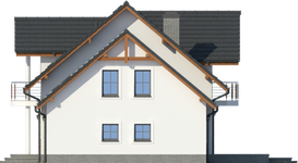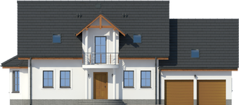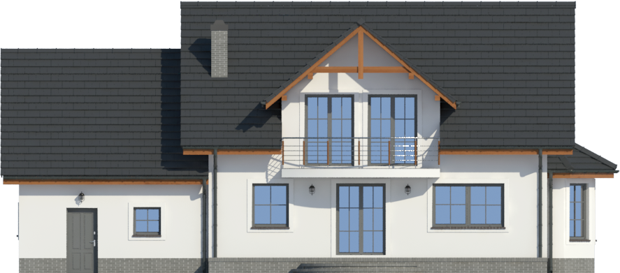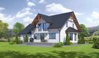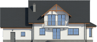 Graficzne opracowanie rzutów poglądowych widocznych na karcie projektu zostało wykonane przez Extradom.pl. Prezentowane przez Extradom.pl wizualizacje wykonane zostały przez autora projektu i należy poczytywać je jedynie za przykład i propozycję wykończenia, wizję architektoniczną autora projektu. Ostateczne wykończenie budynku może nastąpić na wiele sposobów. Szczegółowe rozwiązania zastosowane w oferowanej dokumentacji - w tym również ilość, lokalizacje i wygląd okien, drzwi, kominów - mogą w niewielkim stopniu różnić się od prezentowanej wizualizacji budynku.
