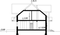 Wysokość ścianki kolankowej: 1.29 m. Strop: płyta żelbetowa. Pokrycie dachu: dachówka ceramiczna, na poddaszu izolacja natryskowa Icynene. Ściany zewnętrzne: pustaki ceramiczne + styropian. Ściany wewnętrzne: pustaki ceramiczne. Typ ogrzewania: kocioł gazowy lub kocioł na paliwo stałe.