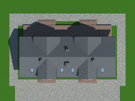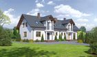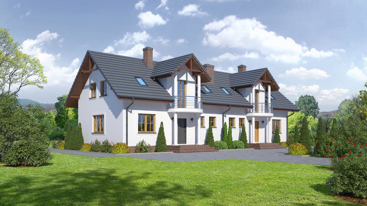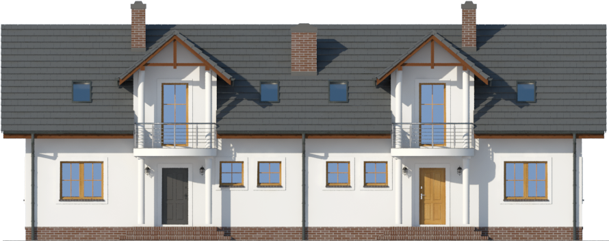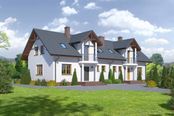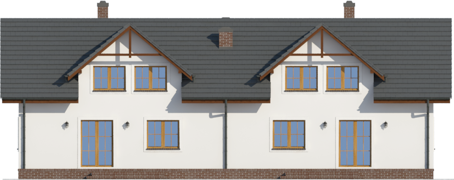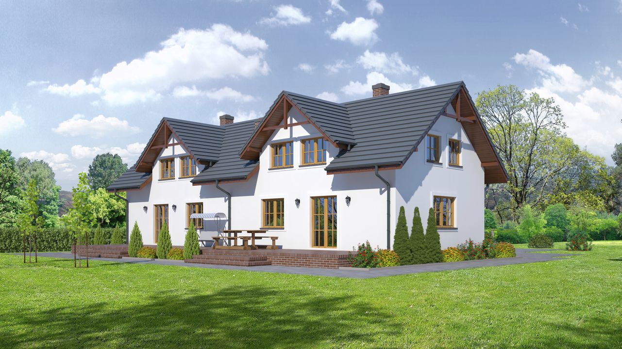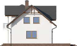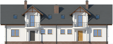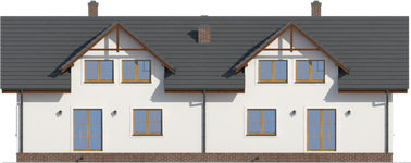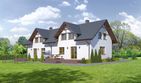 Graficzne opracowanie rzutów poglądowych widocznych na karcie projektu zostało wykonane przez Extradom.pl. Prezentowane przez Extradom.pl wizualizacje wykonane zostały przez autora projektu i należy poczytywać je jedynie za przykład i propozycję wykończenia, wizję architektoniczną autora projektu. Ostateczne wykończenie budynku może nastąpić na wiele sposobów. Szczegółowe rozwiązania zastosowane w oferowanej dokumentacji - w tym również ilość, lokalizacje i wygląd okien, drzwi, kominów - mogą w niewielkim stopniu różnić się od prezentowanej wizualizacji budynku.