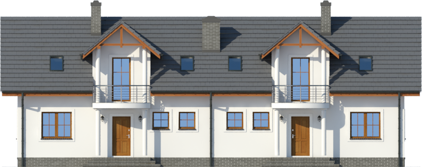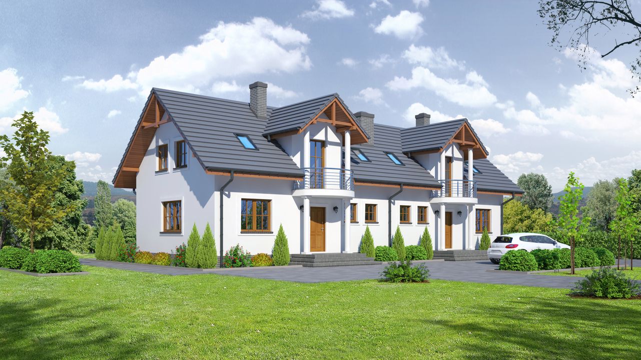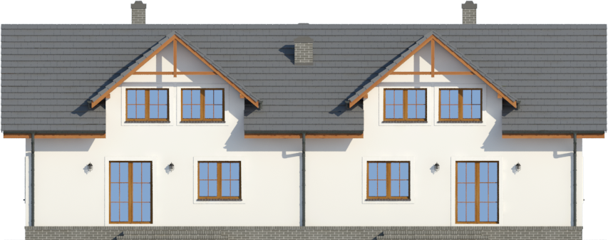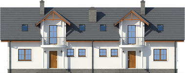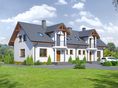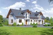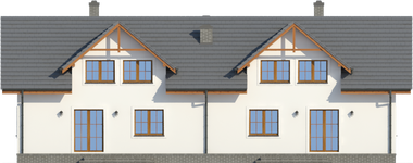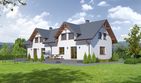 Graficzne opracowanie rzutów poglądowych widocznych na karcie projektu zostało wykonane przez Extradom.pl. Prezentowane przez Extradom.pl wizualizacje wykonane zostały przez autora projektu i należy poczytywać je jedynie za przykład i propozycję wykończenia, wizję architektoniczną autora projektu. Ostateczne wykończenie budynku może nastąpić na wiele sposobów. Szczegółowe rozwiązania zastosowane w oferowanej dokumentacji - w tym również ilość, lokalizacje i wygląd okien, drzwi, kominów - mogą w niewielkim stopniu różnić się od prezentowanej wizualizacji budynku.