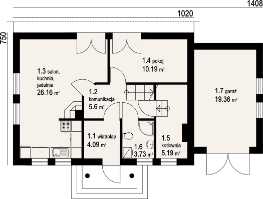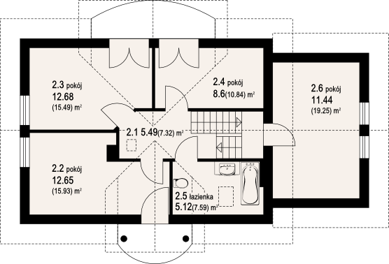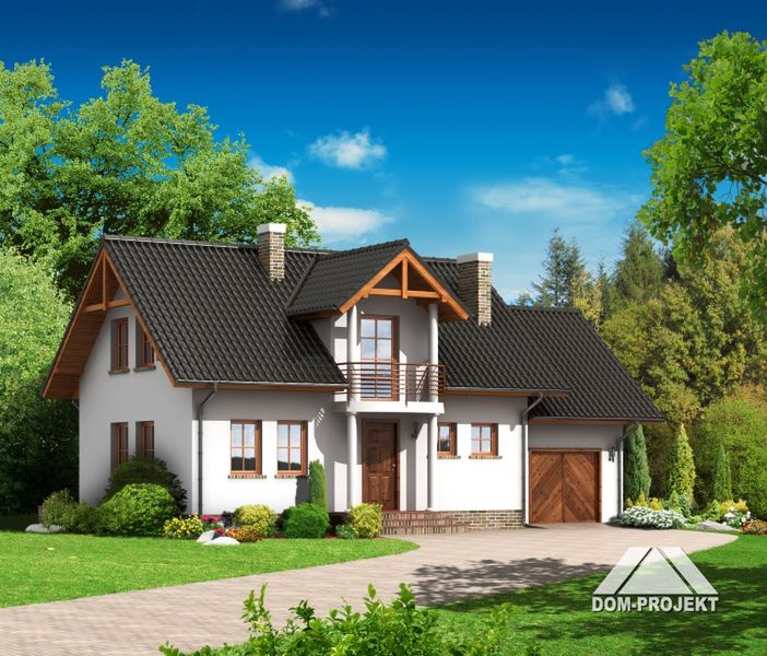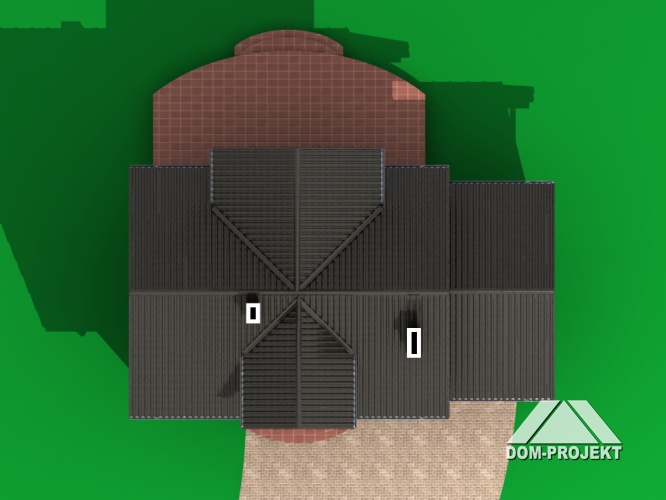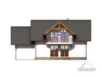 Graficzne opracowanie rzutów poglądowych widocznych na karcie projektu zostało wykonane przez Extradom.pl. Prezentowane przez Extradom.pl wizualizacje wykonane zostały przez autora projektu i należy poczytywać je jedynie za przykład i propozycję wykończenia, wizję architektoniczną autora projektu. Ostateczne wykończenie budynku może nastąpić na wiele sposobów. Szczegółowe rozwiązania zastosowane w oferowanej dokumentacji - w tym również ilość, lokalizacje i wygląd okien, drzwi, kominów - mogą w niewielkim stopniu różnić się od prezentowanej wizualizacji budynku.