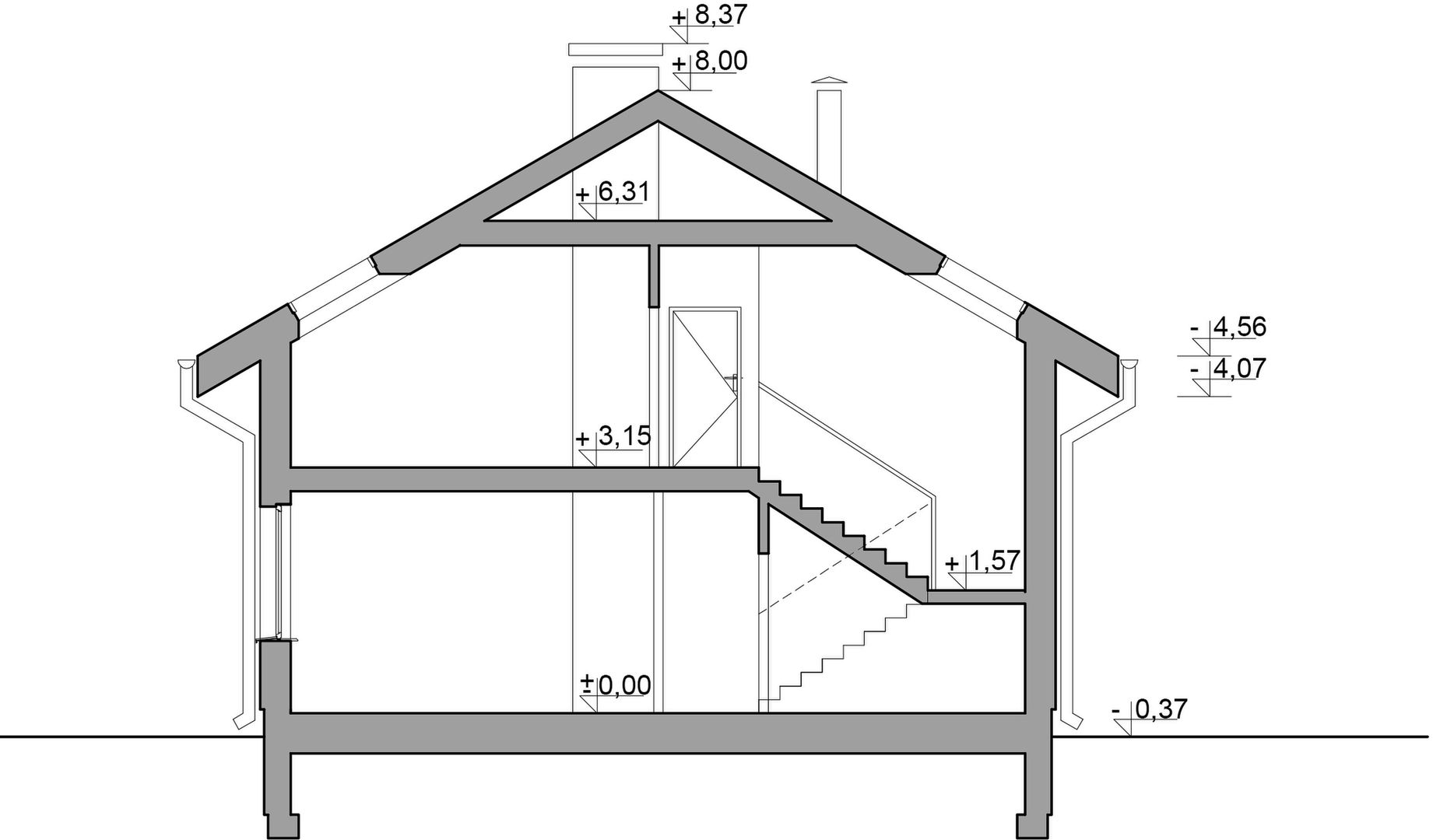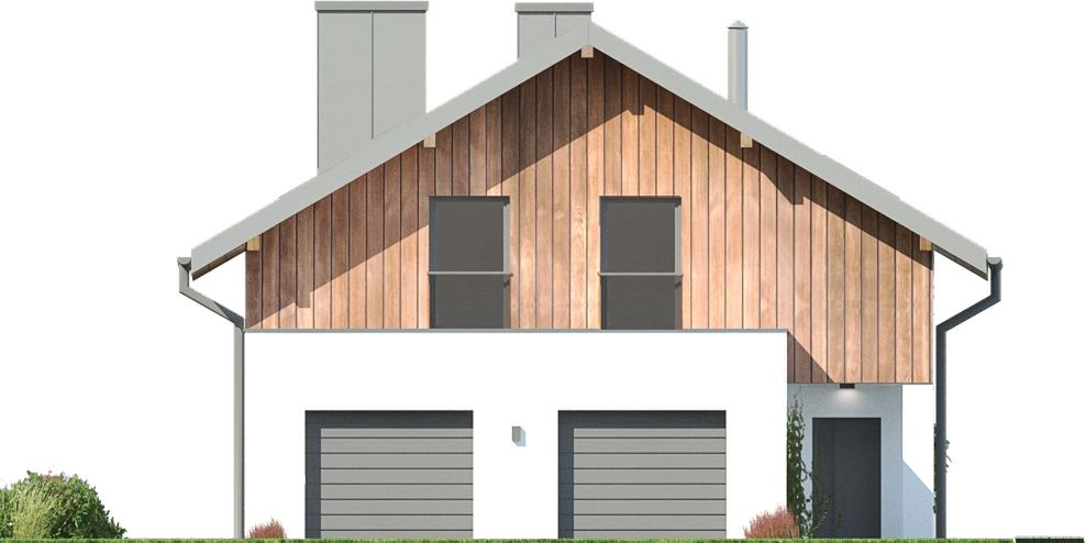 Fundamenty: Budynek posadowiony na ławach i stopach fundamentowych. Ściany zewnętrzne: Murowane, dwuwarstwowe ściany z bloczków gazobetonowych o grubości 19cm na zaprawie cienkowarstwowej, ocieplone styropianem o grubości 20cm. W miejscach występowania deski elewacyjnej ściany trójwarstwowe z bloczków gazobetonowych, 20 cm styropianu oraz deski elewacyjnej lub płyty HPL. Ściany wewnętrzne: Ściany murowane z bloczków gazobetonowych o grubości 19cm, w miejscach wyznaczonych w projekcie słupy i elementy żelbetowe. Stropy: Stropy między kondygnacyjne projektuje się jako żelbetowe. Posadzki w garażu: szlichta cementowa zbrojona siatkami zgrzewanymi grub. 7 cm ze spadkiem w kierunku spustów. Posadzka dylatowana, zbrojona mikrozbrojeniem, utwardzona powierzchniowo. Konstrukcja dachu: Dach dwuspadkowy, krokwie 8x20cm, ocieplone wełną mineralną. Pokrycie dachu: Blacha tytanowo-cynkowa na rąbek stojący. Wykończenie elewacji: Tynk, w wyznaczonych miejscach okładzina drewniana