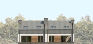 Graficzne opracowanie rzutów poglądowych widocznych na karcie projektu zostało wykonane przez Extradom.pl. Prezentowane przez Extradom.pl wizualizacje wykonane zostały przez autora projektu i należy poczytywać je jedynie za przykład i propozycję wykończenia, wizję architektoniczną autora projektu. Ostateczne wykończenie budynku może nastąpić na wiele sposobów. Szczegółowe rozwiązania zastosowane w oferowanej dokumentacji - w tym również ilość, lokalizacje i wygląd okien, drzwi, kominów - mogą w niewielkim stopniu różnić się od prezentowanej wizualizacji budynku.