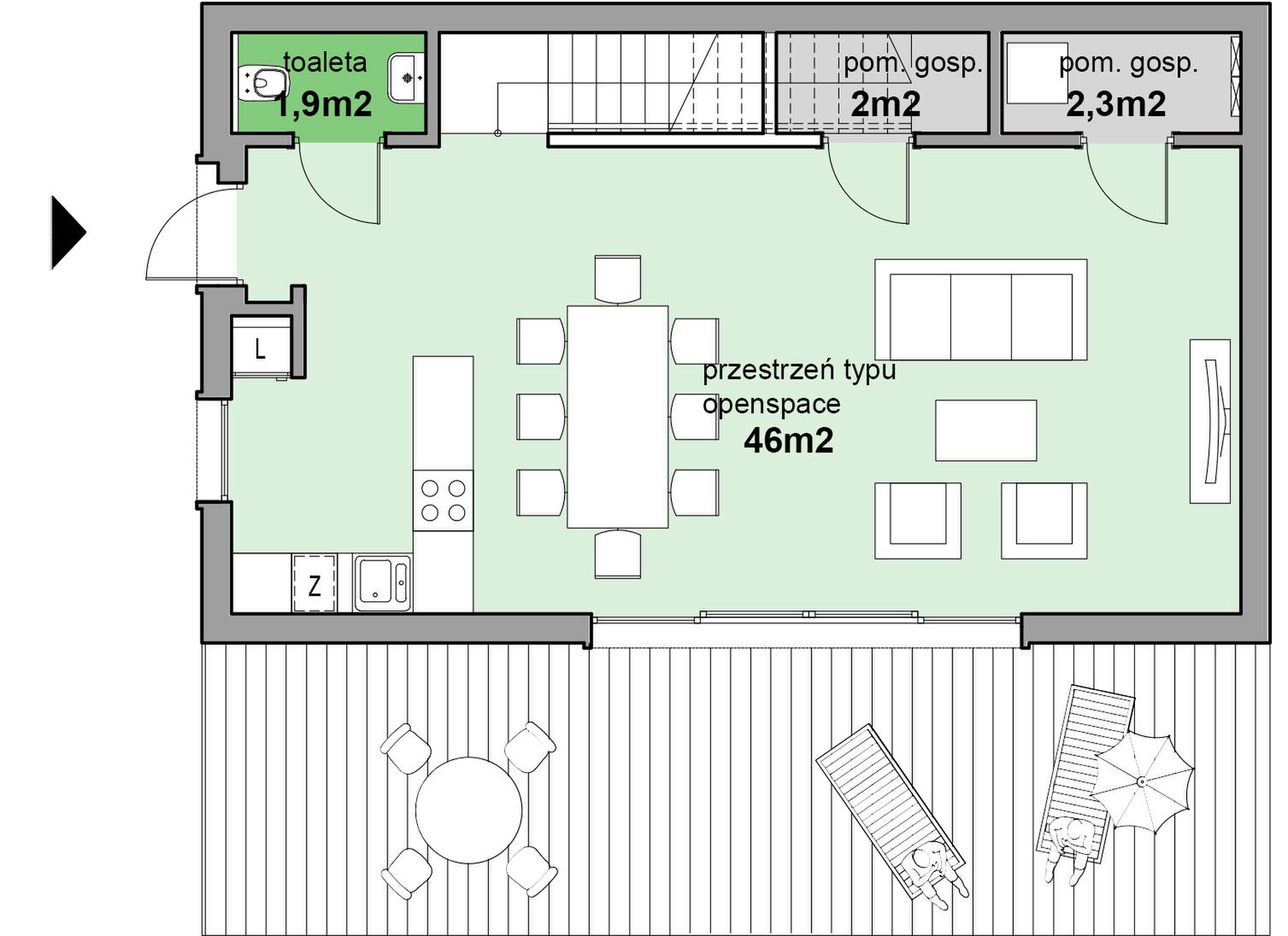 Piętro 1 - 48,80 m²