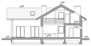 Graficzne opracowanie rzutów poglądowych widocznych na karcie projektu zostało wykonane przez Extradom.pl. Prezentowane przez Extradom.pl wizualizacje wykonane zostały przez autora projektu i należy poczytywać je jedynie za przykład i propozycję wykończenia, wizję architektoniczną autora projektu. Ostateczne wykończenie budynku może nastąpić na wiele sposobów. Szczegółowe rozwiązania zastosowane w oferowanej dokumentacji - w tym również ilość, lokalizacje i wygląd okien, drzwi, kominów - mogą w niewielkim stopniu różnić się od prezentowanej wizualizacji budynku.
