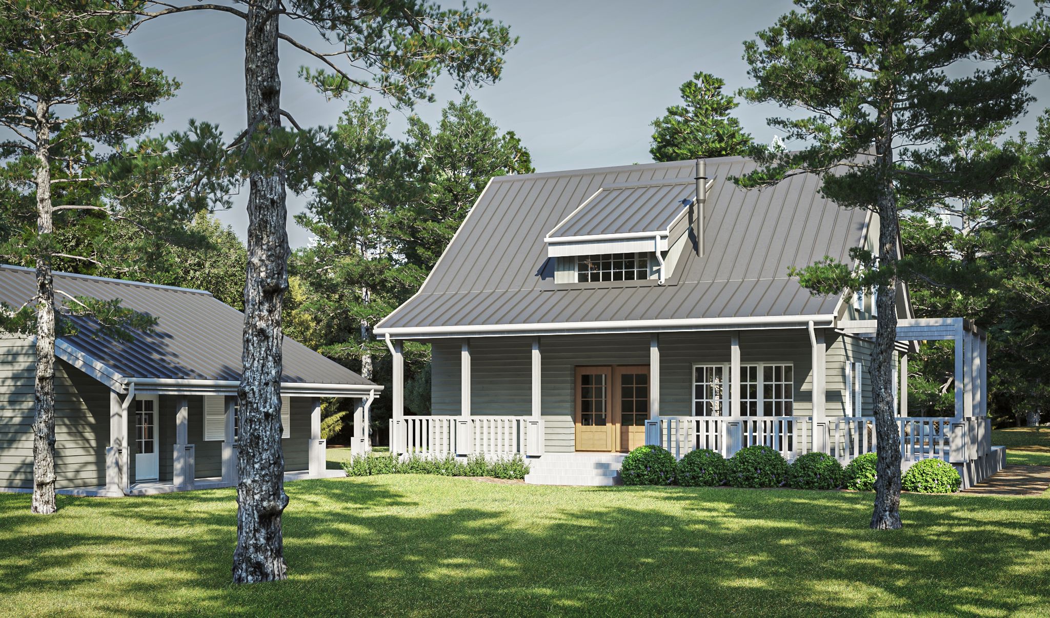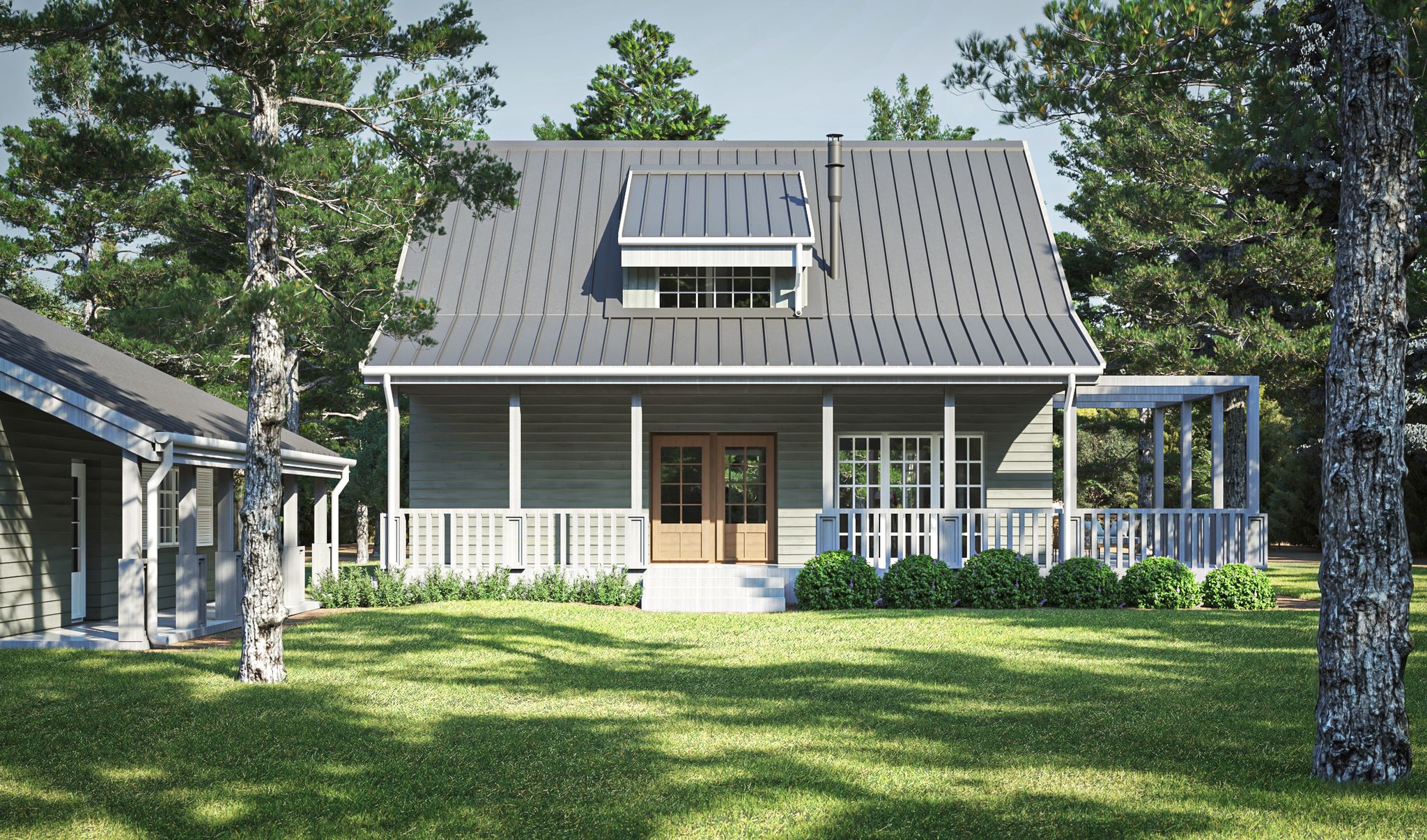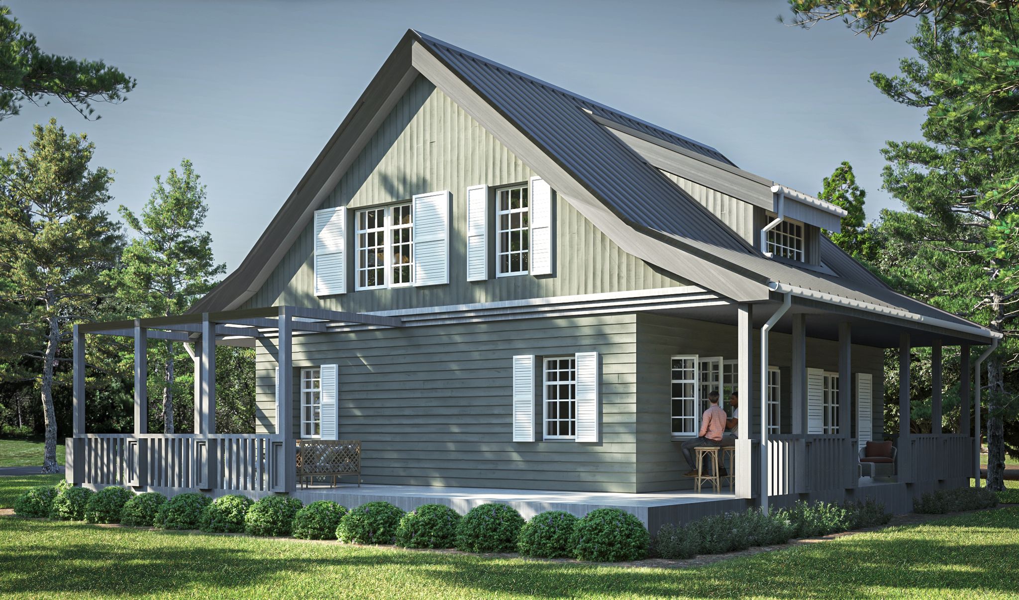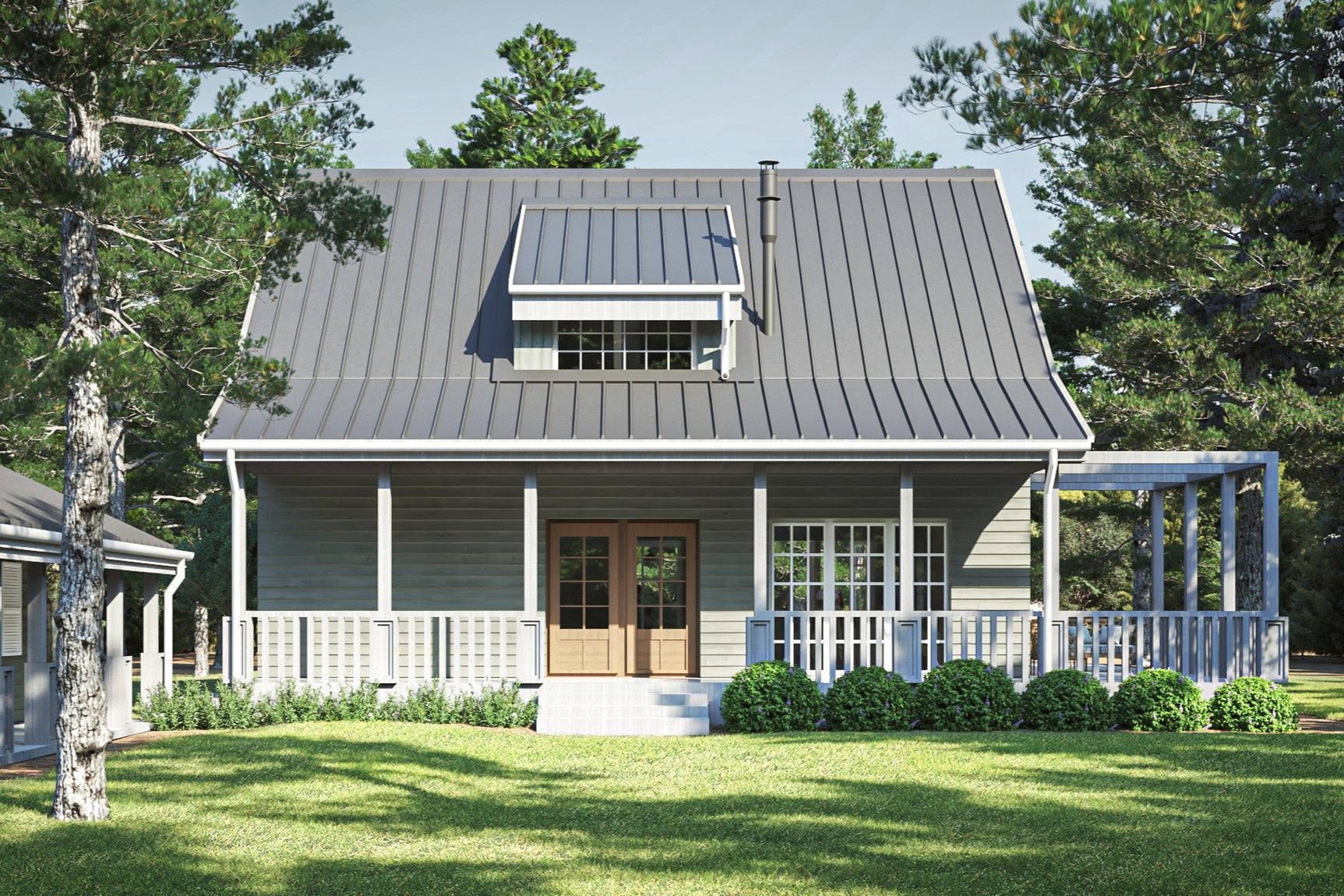 Graficzne opracowanie rzutów poglądowych widocznych na karcie projektu zostało wykonane przez Extradom.pl. Prezentowane przez Extradom.pl wizualizacje wykonane zostały przez autora projektu i należy poczytywać je jedynie za przykład i propozycję wykończenia, wizję architektoniczną autora projektu. Ostateczne wykończenie budynku może nastąpić na wiele sposobów. Szczegółowe rozwiązania zastosowane w oferowanej dokumentacji - w tym również ilość, lokalizacje i wygląd okien, drzwi, kominów - mogą w niewielkim stopniu różnić się od prezentowanej wizualizacji budynku.