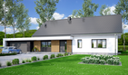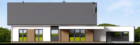 Graficzne opracowanie rzutów poglądowych widocznych na karcie projektu zostało wykonane przez Extradom.pl. Prezentowane przez Extradom.pl wizualizacje wykonane zostały przez autora projektu i należy poczytywać je jedynie za przykład i propozycję wykończenia, wizję architektoniczną autora projektu. Ostateczne wykończenie budynku może nastąpić na wiele sposobów. Szczegółowe rozwiązania zastosowane w oferowanej dokumentacji - w tym również ilość, lokalizacje i wygląd okien, drzwi, kominów - mogą w niewielkim stopniu różnić się od prezentowanej wizualizacji budynku.