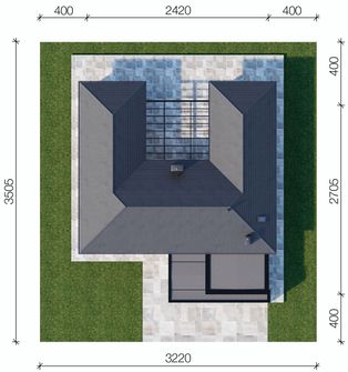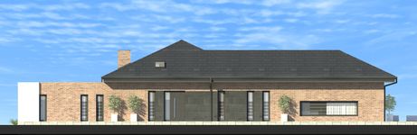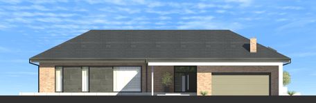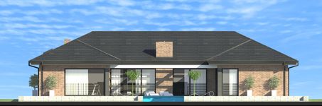 Graficzne opracowanie rzutów poglądowych widocznych na karcie projektu zostało wykonane przez Extradom.pl. Prezentowane przez Extradom.pl wizualizacje wykonane zostały przez autora projektu i należy poczytywać je jedynie za przykład i propozycję wykończenia, wizję architektoniczną autora projektu. Ostateczne wykończenie budynku może nastąpić na wiele sposobów. Szczegółowe rozwiązania zastosowane w oferowanej dokumentacji - w tym również ilość, lokalizacje i wygląd okien, drzwi, kominów - mogą w niewielkim stopniu różnić się od prezentowanej wizualizacji budynku.