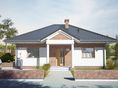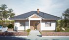 Graficzne opracowanie rzutów poglądowych widocznych na karcie projektu zostało wykonane przez Extradom.pl. Prezentowane przez Extradom.pl wizualizacje wykonane zostały przez autora projektu i należy poczytywać je jedynie za przykład i propozycję wykończenia, wizję architektoniczną autora projektu. Ostateczne wykończenie budynku może nastąpić na wiele sposobów. Szczegółowe rozwiązania zastosowane w oferowanej dokumentacji - w tym również ilość, lokalizacje i wygląd okien, drzwi, kominów - mogą w niewielkim stopniu różnić się od prezentowanej wizualizacji budynku.