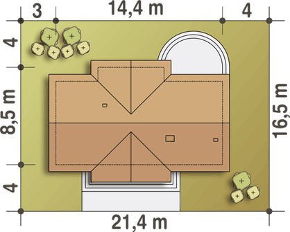 Graficzne opracowanie rzutów poglądowych widocznych na karcie projektu zostało wykonane przez Extradom.pl. Prezentowane przez Extradom.pl wizualizacje wykonane zostały przez autora projektu i należy poczytywać je jedynie za przykład i propozycję wykończenia, wizję architektoniczną autora projektu. Ostateczne wykończenie budynku może nastąpić na wiele sposobów. Szczegółowe rozwiązania zastosowane w oferowanej dokumentacji - w tym również ilość, lokalizacje i wygląd okien, drzwi, kominów - mogą w niewielkim stopniu różnić się od prezentowanej wizualizacji budynku.