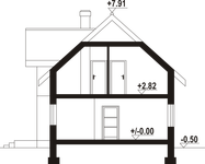 Graficzne opracowanie rzutów poglądowych widocznych na karcie projektu zostało wykonane przez Extradom.pl. Prezentowane przez Extradom.pl wizualizacje wykonane zostały przez autora projektu i należy poczytywać je jedynie za przykład i propozycję wykończenia, wizję architektoniczną autora projektu. Ostateczne wykończenie budynku może nastąpić na wiele sposobów. Szczegółowe rozwiązania zastosowane w oferowanej dokumentacji - w tym również ilość, lokalizacje i wygląd okien, drzwi, kominów - mogą w niewielkim stopniu różnić się od prezentowanej wizualizacji budynku.
