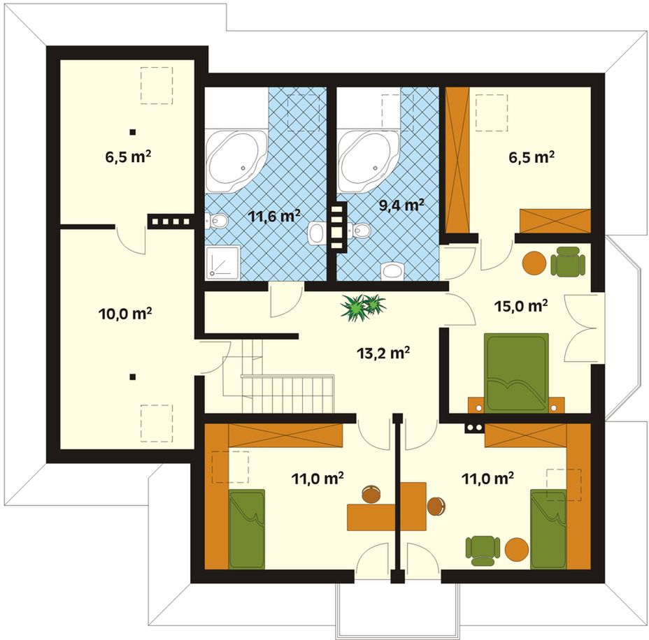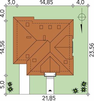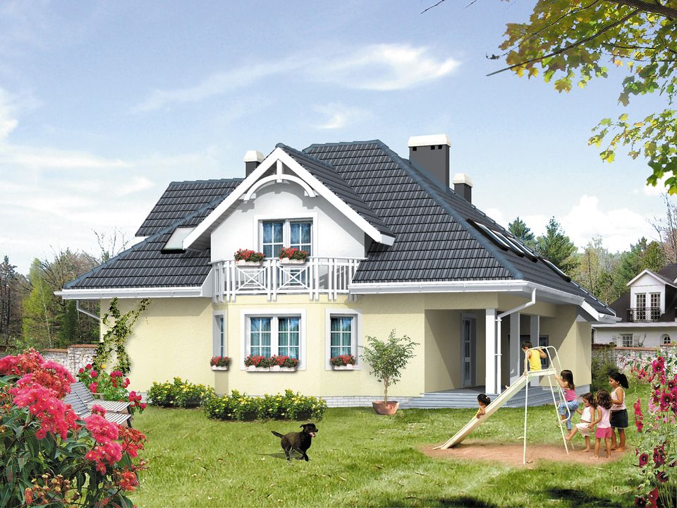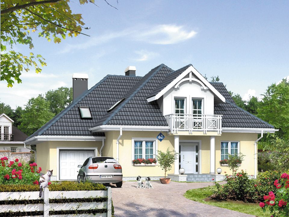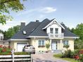 Graficzne opracowanie rzutów poglądowych widocznych na karcie projektu zostało wykonane przez Extradom.pl. Prezentowane przez Extradom.pl wizualizacje wykonane zostały przez autora projektu i należy poczytywać je jedynie za przykład i propozycję wykończenia, wizję architektoniczną autora projektu. Ostateczne wykończenie budynku może nastąpić na wiele sposobów. Szczegółowe rozwiązania zastosowane w oferowanej dokumentacji - w tym również ilość, lokalizacje i wygląd okien, drzwi, kominów - mogą w niewielkim stopniu różnić się od prezentowanej wizualizacji budynku.