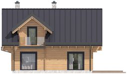 Posadowienie budynku: ława fundamentowa; Ściany zewnętrzne: z balika drewnianego (8cm) + szkieletowa z wełną izolacyjną 20cm; Ściany wewnętrzne: parter: balik drewniany (8cm) lub kostrukcja szkieletowa z płytami g-k (8cm); piętro: konstrukcja szkieletowa 8cm; Strop nad parterem: drewniany; Konstrukcja dachu: drewniana, krokwiowo-jętkowa; Pokrycie dachu: blachodachówka lub blacha na rąbek; Elewacja: balik drewniany (8cm);