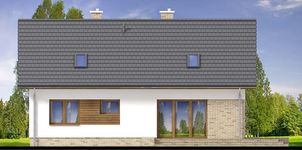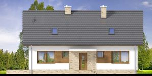 Graficzne opracowanie rzutów poglądowych widocznych na karcie projektu zostało wykonane przez Extradom.pl. Prezentowane przez Extradom.pl wizualizacje wykonane zostały przez autora projektu i należy poczytywać je jedynie za przykład i propozycję wykończenia, wizję architektoniczną autora projektu. Ostateczne wykończenie budynku może nastąpić na wiele sposobów. Szczegółowe rozwiązania zastosowane w oferowanej dokumentacji - w tym również ilość, lokalizacje i wygląd okien, drzwi, kominów - mogą w niewielkim stopniu różnić się od prezentowanej wizualizacji budynku.