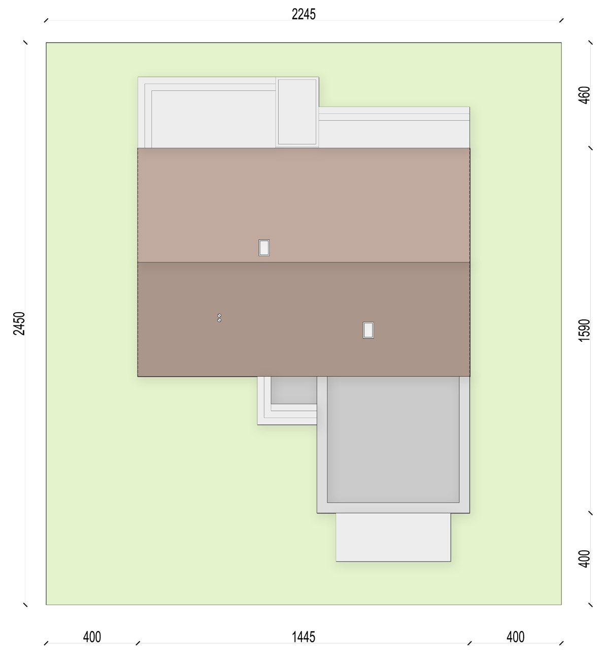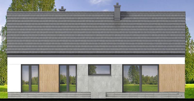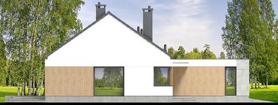 Graficzne opracowanie rzutów poglądowych widocznych na karcie projektu zostało wykonane przez Extradom.pl. Prezentowane przez Extradom.pl wizualizacje wykonane zostały przez autora projektu i należy poczytywać je jedynie za przykład i propozycję wykończenia, wizję architektoniczną autora projektu. Ostateczne wykończenie budynku może nastąpić na wiele sposobów. Szczegółowe rozwiązania zastosowane w oferowanej dokumentacji - w tym również ilość, lokalizacje i wygląd okien, drzwi, kominów - mogą w niewielkim stopniu różnić się od prezentowanej wizualizacji budynku.