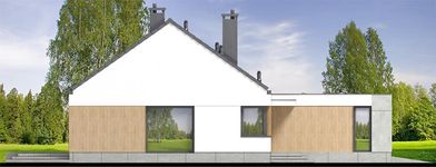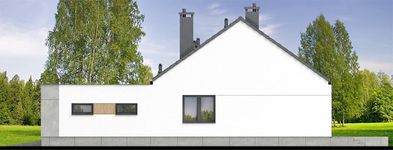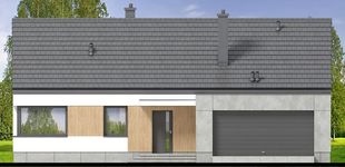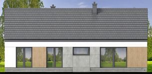 Graficzne opracowanie rzutów poglądowych widocznych na karcie projektu zostało wykonane przez Extradom.pl. Prezentowane przez Extradom.pl wizualizacje wykonane zostały przez autora projektu i należy poczytywać je jedynie za przykład i propozycję wykończenia, wizję architektoniczną autora projektu. Ostateczne wykończenie budynku może nastąpić na wiele sposobów. Szczegółowe rozwiązania zastosowane w oferowanej dokumentacji - w tym również ilość, lokalizacje i wygląd okien, drzwi, kominów - mogą w niewielkim stopniu różnić się od prezentowanej wizualizacji budynku.
